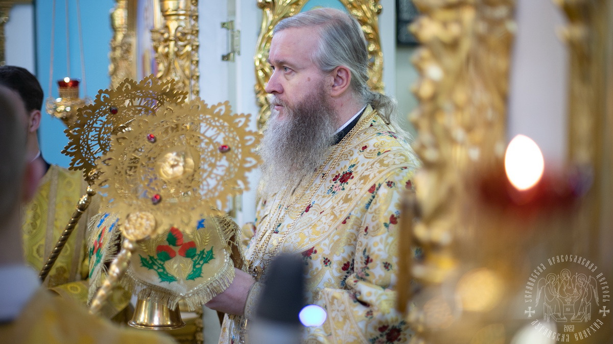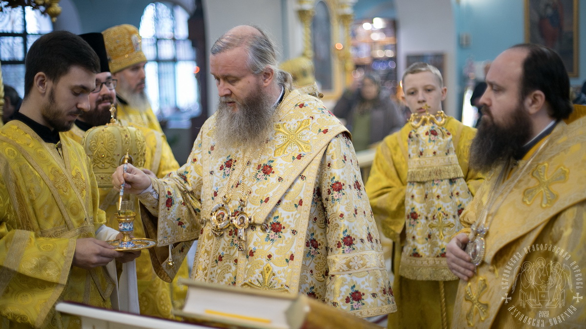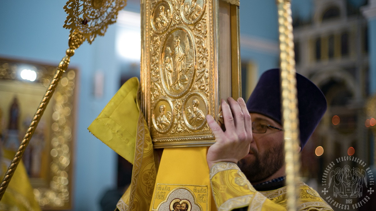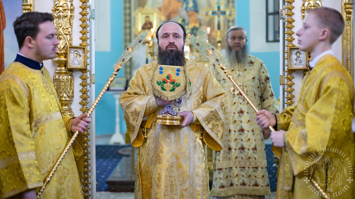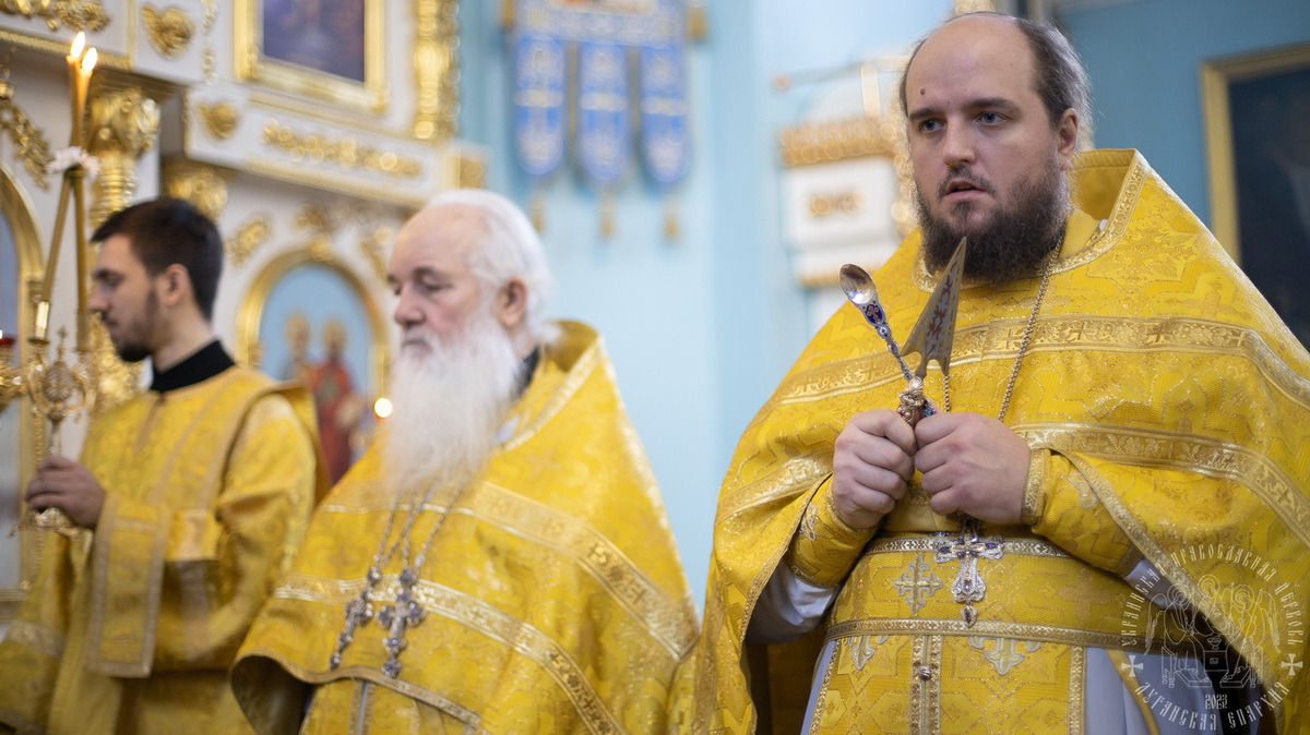 За Литургией Преосвященным архипастырям сослужил секретарь епархии прот. Андрей Зозуля, а также духовенство кафедрального собора.