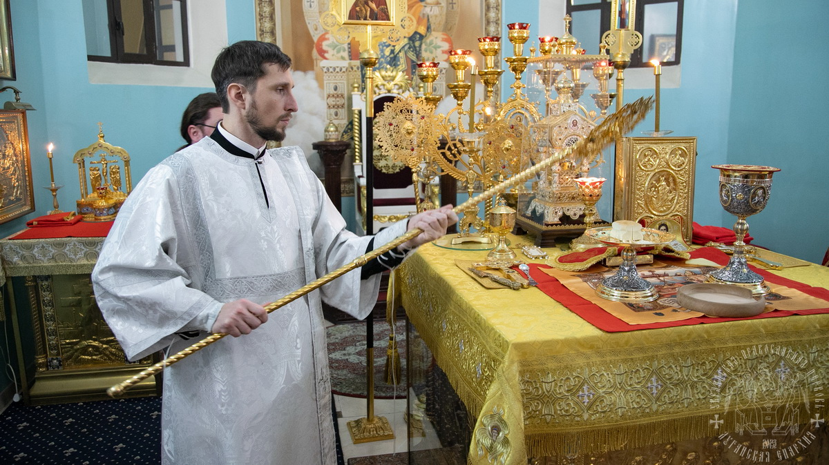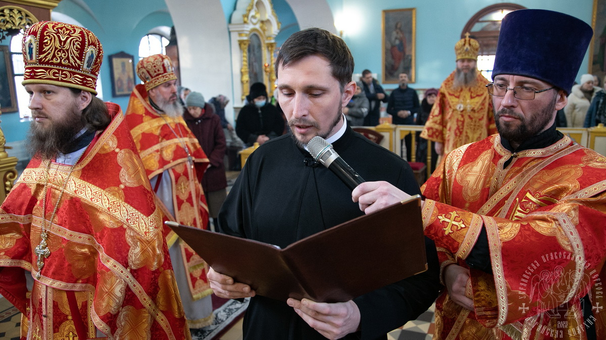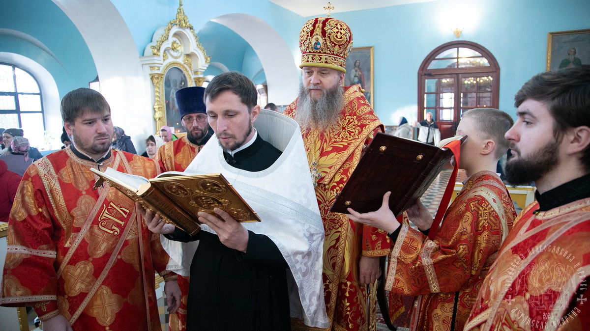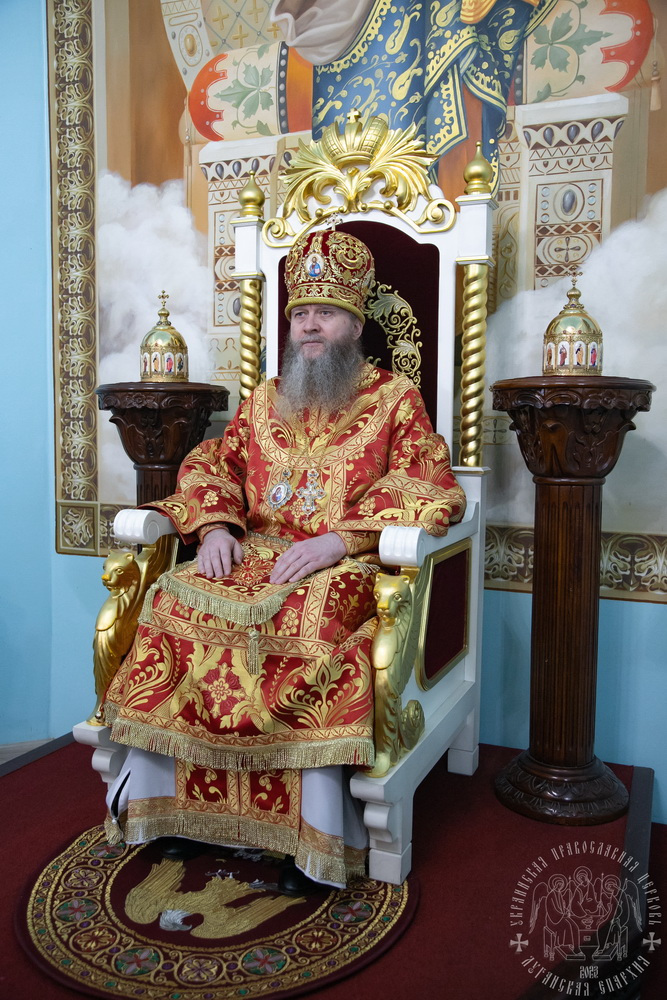 За Литургией Его Высокопреосвященству сослужил секретарь епархии прот. Андрей Зозуля, благочинный Станично Луганского округа прот. Алексий Храбров, а также духовенство кафедрального собора.
