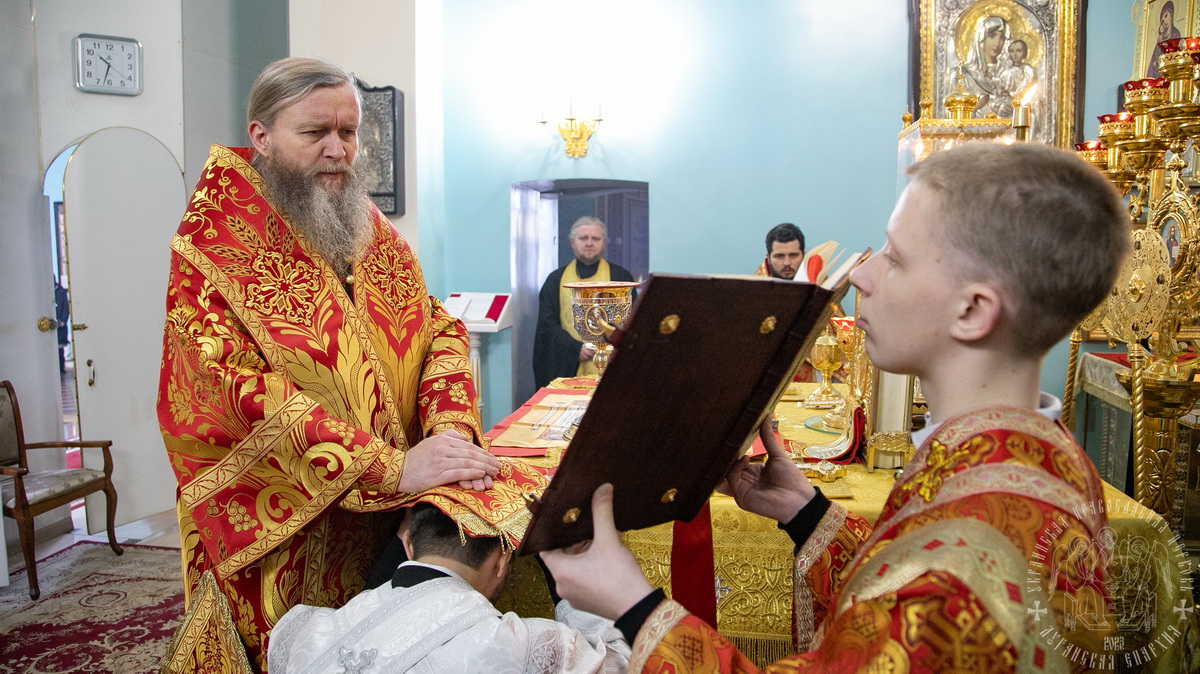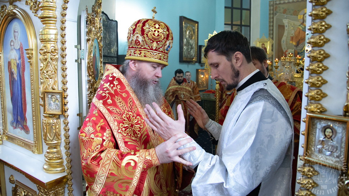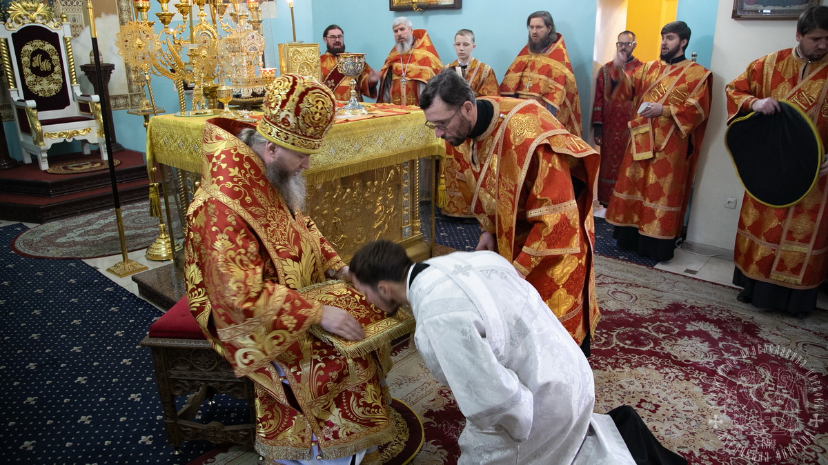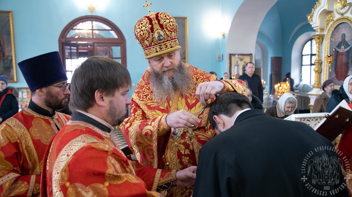 После Евхаристического канона архипастырь рукоположил ставленника Станично Луганского благочиния Александра Александровича Торошка в сан диакона.