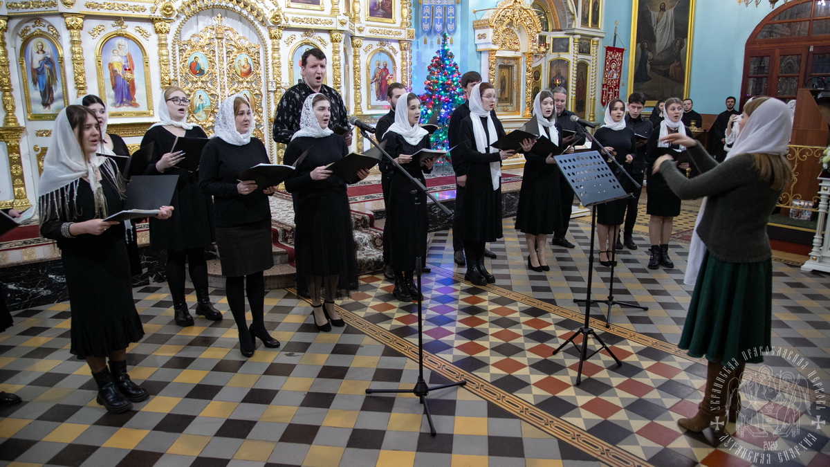 Рождественскими колядками и стихотворениями, посвящёнными празднику Рождества Христова, владыку и всех гостей поздравил архиерейский хор, хоровые коллективы городских храмов и воспитанники воскресной школы.