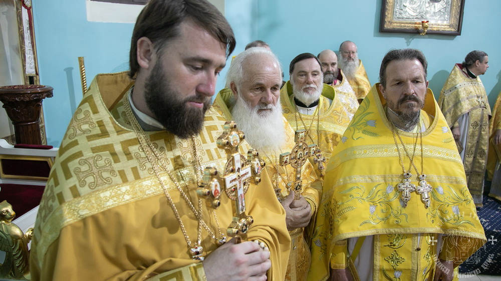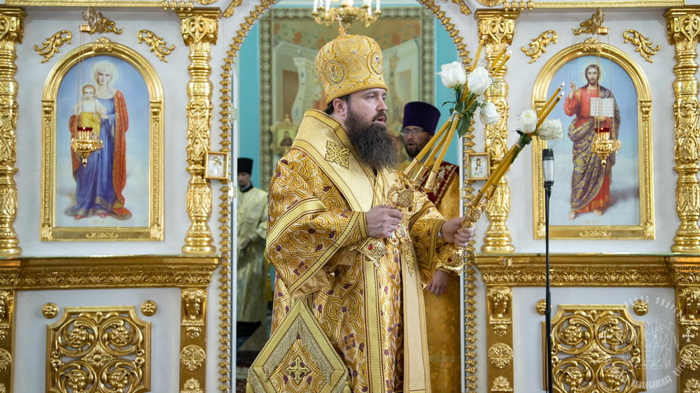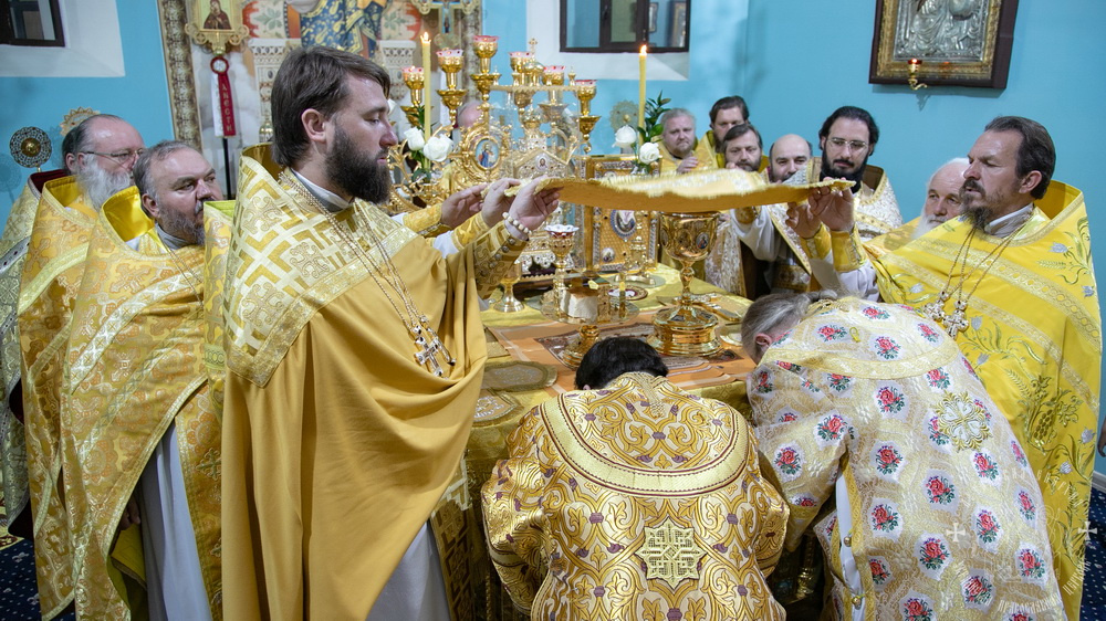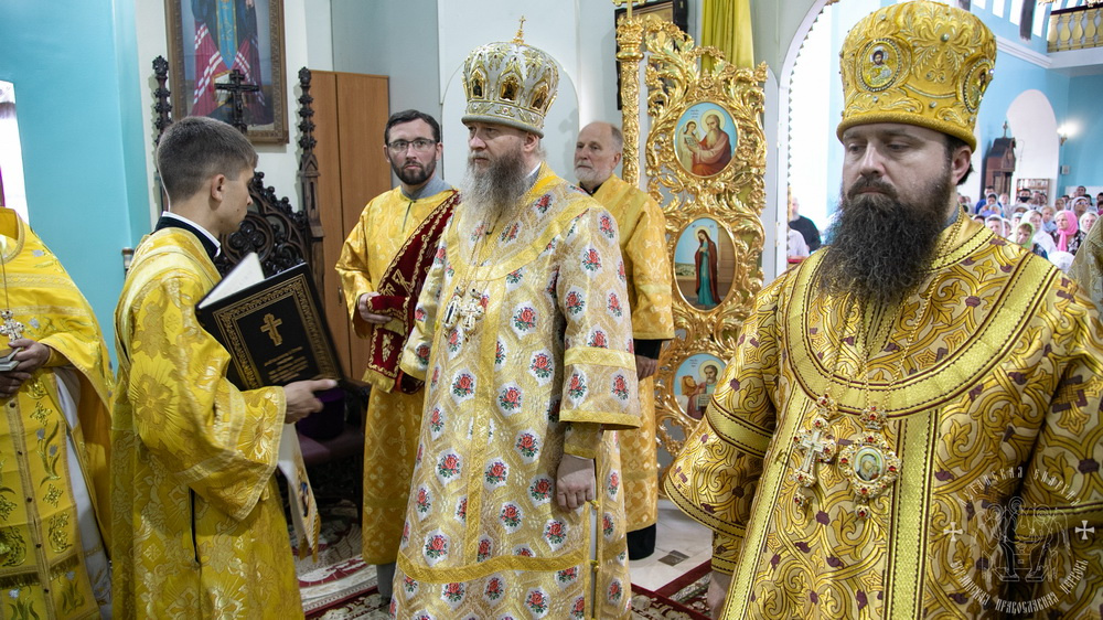 После сугубой ектении владыки вознесли молитву о мире и умножении любви среди народа Отечества нашего и молитву «во время распространения вредоносного поветрия».