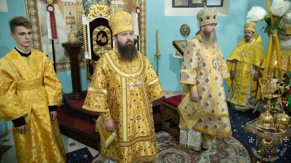 За Божественной литургией архипастырям сослужили: секретарь Ровеньковской епархий прот. Григорий Устименко, секретарь Луганской епархии архим. Макарий (Любавцев), игумен Свято-Вознесенского мужского монастыря архим. Иоанн (Сухина), отцы благочинные, а также приглашенное духовенство.