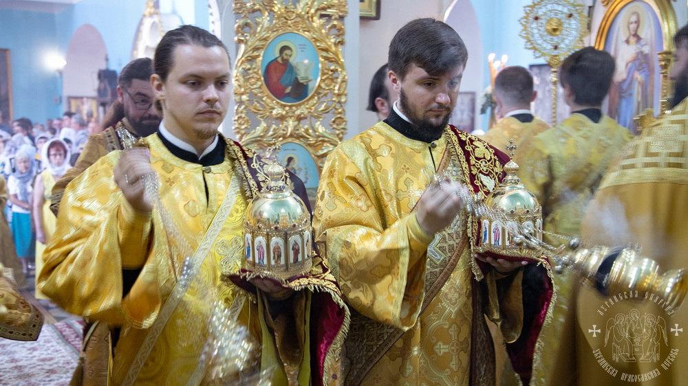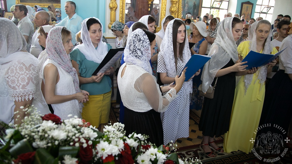 12 июля, в день памяти святых Первоверховных апостолов Петра и Павла, Высокопреосвященнейший Пантелеимон, митрополит Ровеньковский и Свердловский, временно управляющий Луганской епархией, и Преосвященнейший Павел, епископ Беловодский, совершили праздничное богослужение в Свято-Петропавловском кафедральном соборе.