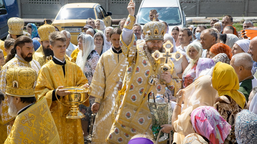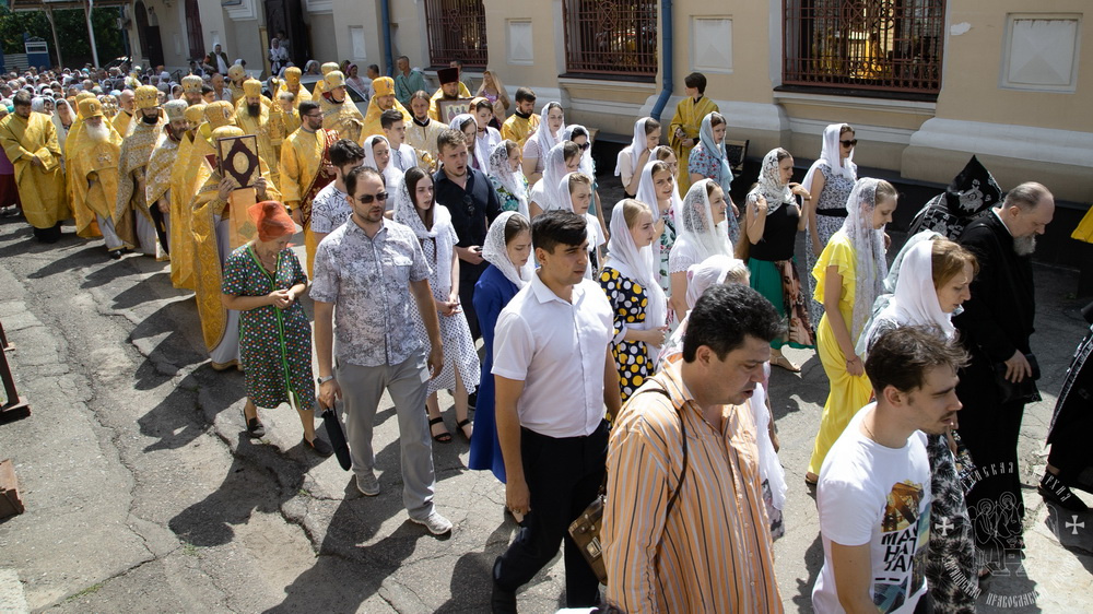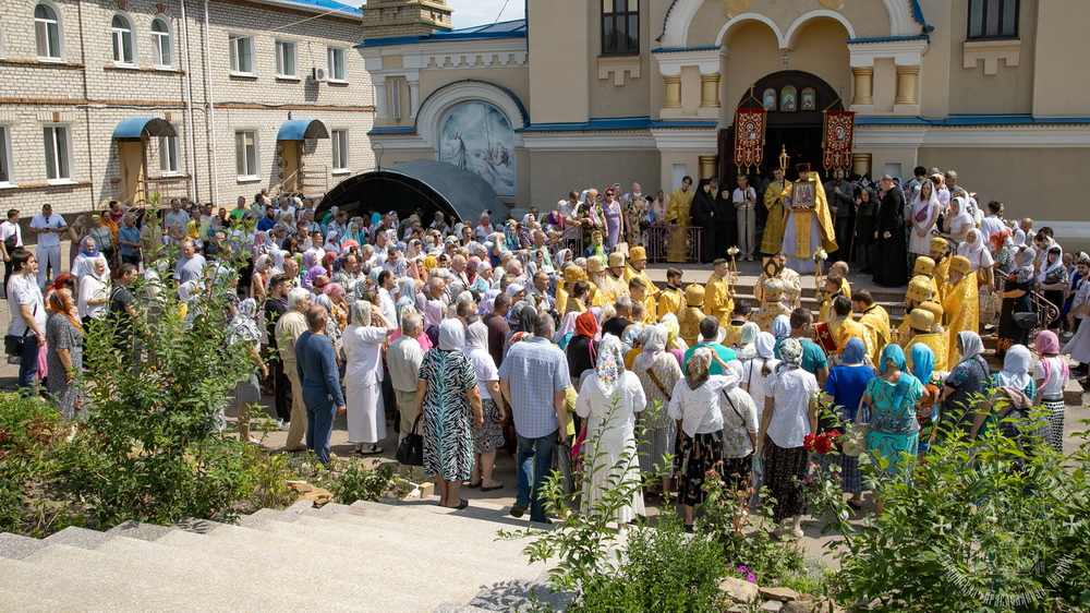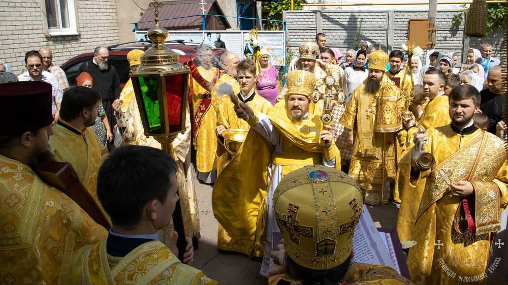Затем, владыки, духовенство и все молящиеся, прошли крестным ходом вокруг собора, во время которого молились о святом храме, о нашем городе и о всех живущих в нем.