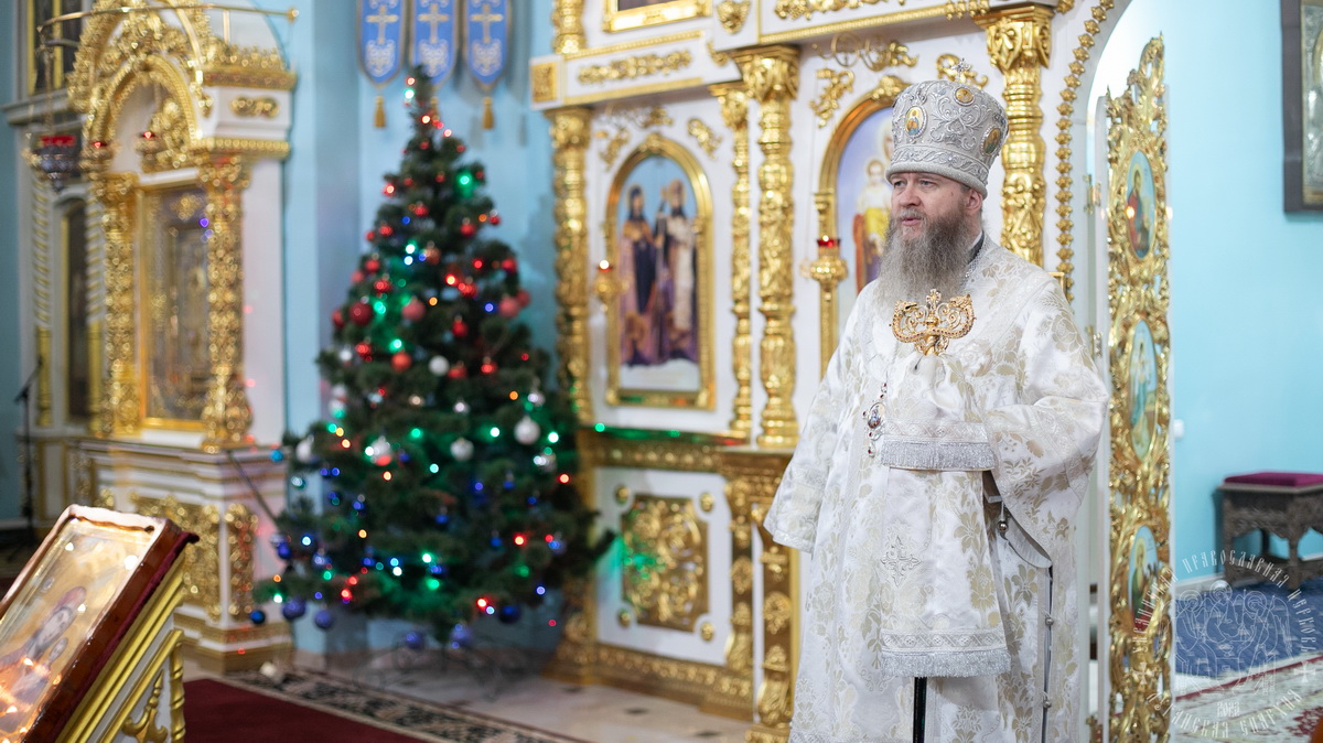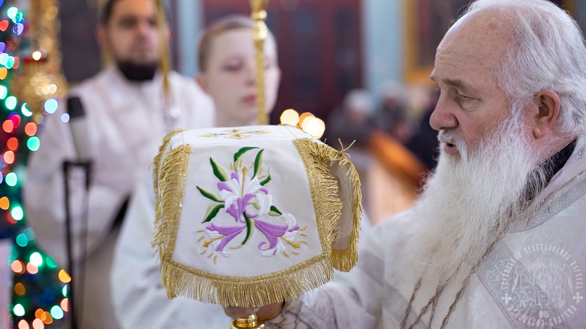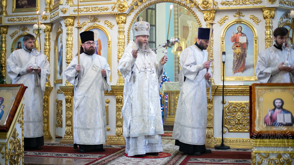 Вечером, накануне праздника, владыка совершил в соборе Утреню Богоявления.