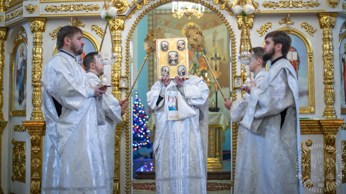 19 января, в праздник Богоявления, Крещения Господа Бога и Спаса нашего Иисуса Христа, Высокопреосвященнейший Пантелеимон, митрополит Луганский и Алчевский, совершил Литургию свт. Иоанна Златоуста в Свято-Петропавловском кафедральном соборе.