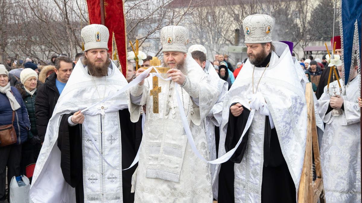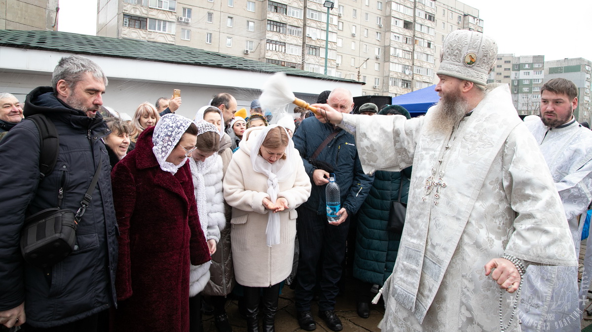 По окончании Литургии, в кафедральном соборе, владыка совершил чин Великого освящение воды на территории храма св. апостола Андрея Первозванного.