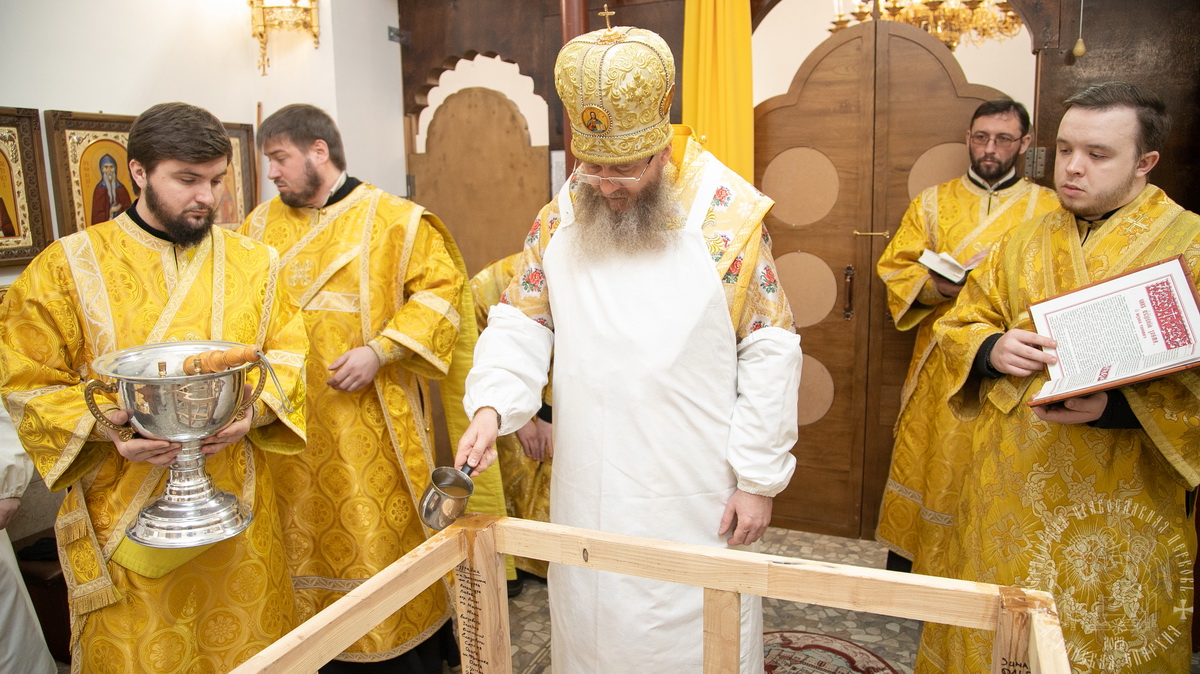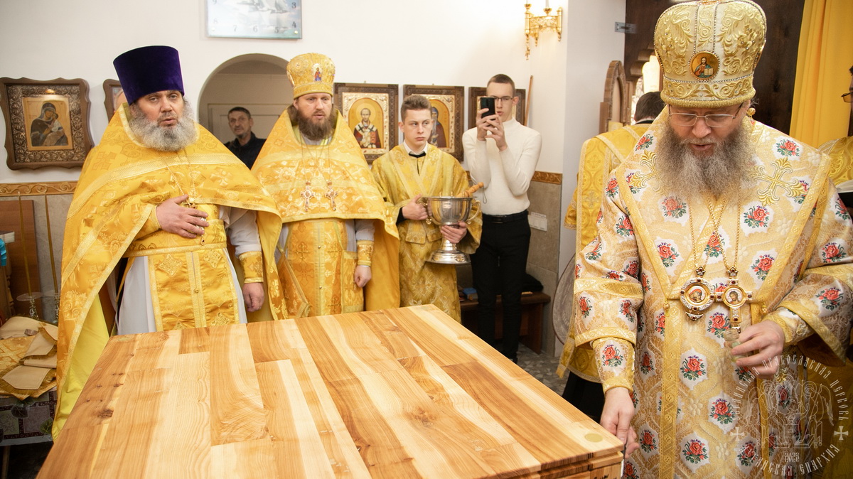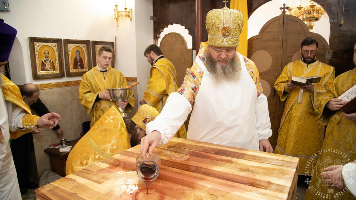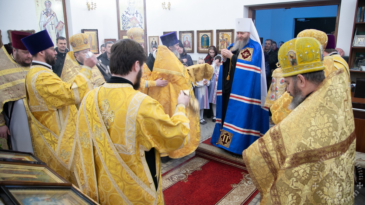 Перед началом Литургии в новосозданном храме, митрополит Пантелеимон в сослужении духовенства, совершил чин великого освящения храма.