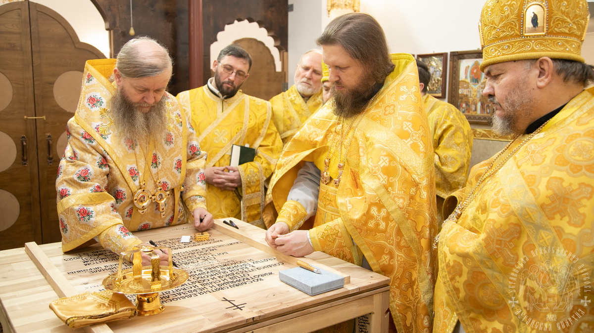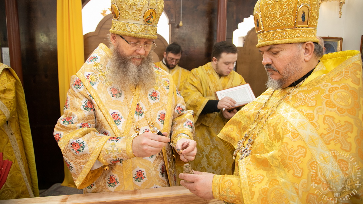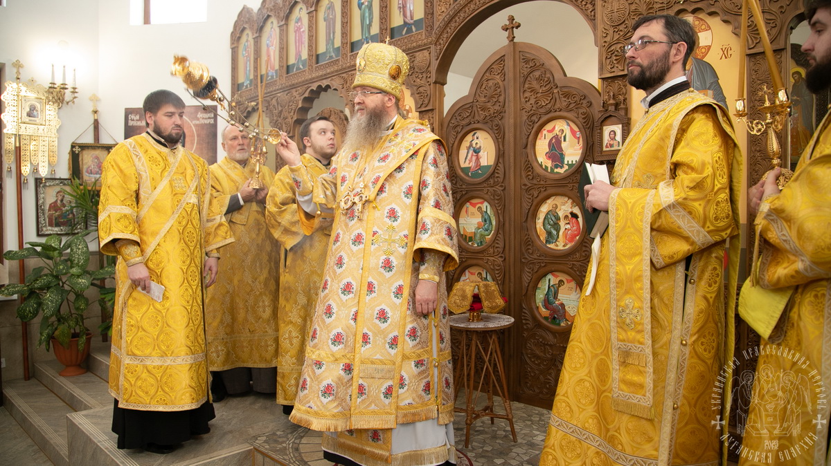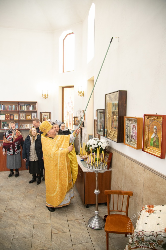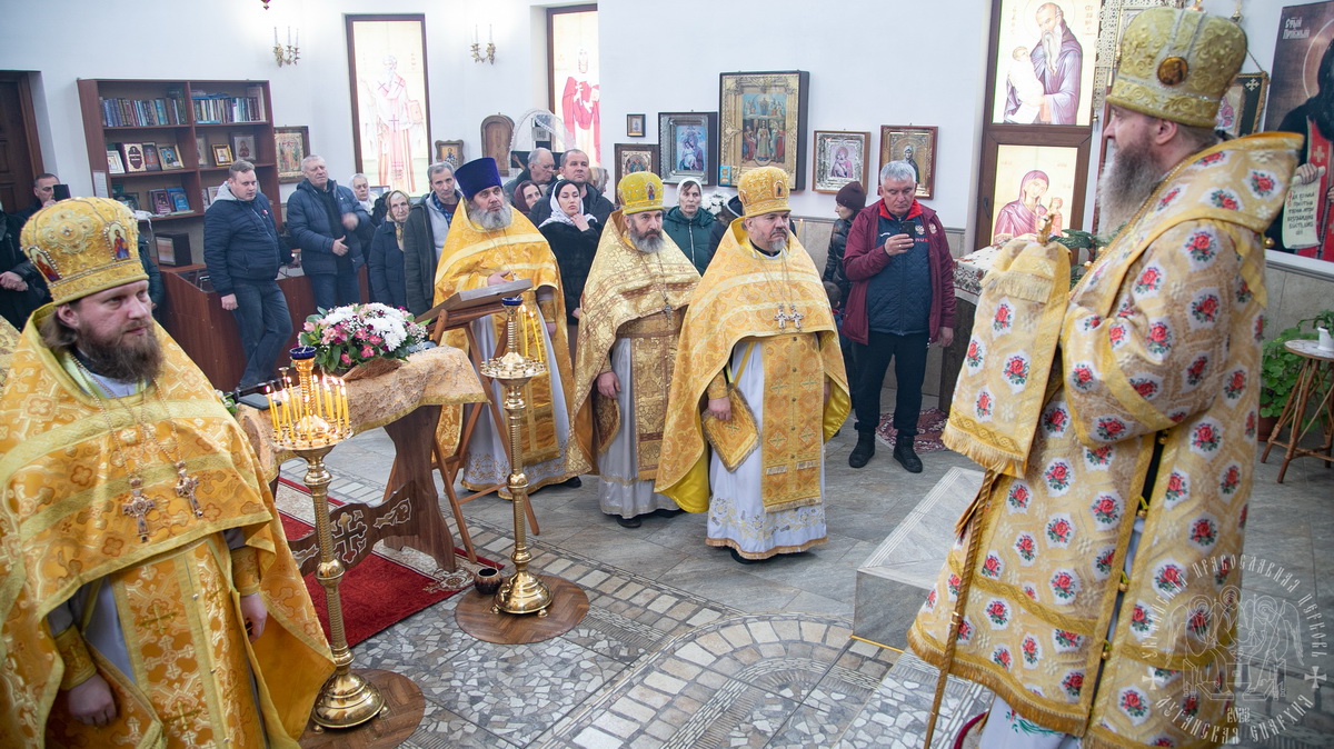 Перед началом Литургии в новосозданном храме, митрополит Пантелеимон в сослужении духовенства, совершил чин великого освящения храма.