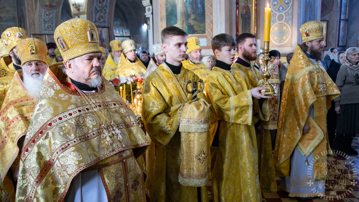 7 февраля, в день памяти святителя Григория Богослова, Высокопреосвященнейший Пантелеимон, митрополит Луганский и Алчевский, в сослужении Высокопреосвященнейшего Никодима, митрополита Северодонецкого и Старобельского, и Высокопреосвященнейшего Иринарха, архиепископа Новопсковского, совершил Божественную литургию в Свято-Николаевском кафедральном соборе г. Алчевска.