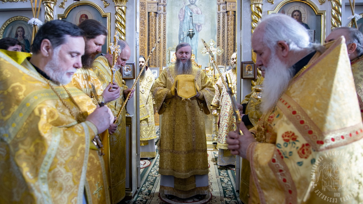 За Литургией Преосвященным архипастырям сослужил секретарь Луганской епархии прот. Андрей Зозуля, благочинный Алчевского округа и настоятель собора прот. Александр Устименко, а также приглашенное духовенство.