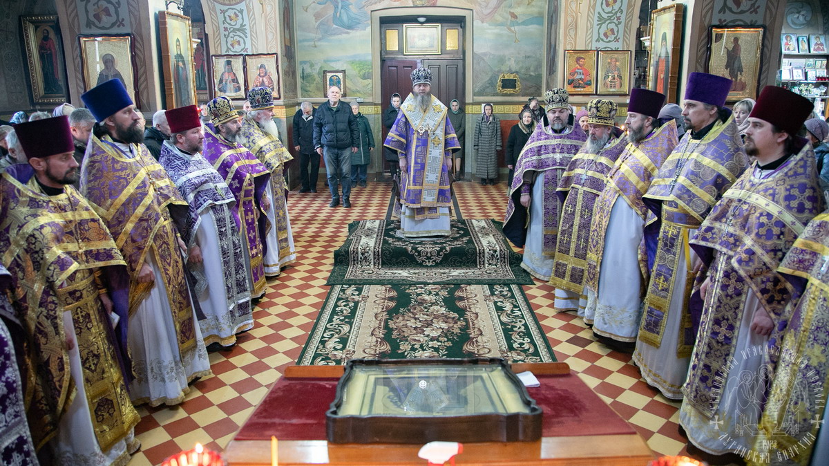 15 марта, в среду третьей седмицы Великого поста, день празднования иконы Божией Матери Державная, Высокопреосвященнейший Пантелеимон, митрополит Луганский и Алчевский, совершил Литургию Преждеосвященных Даров в Свято-Николаевском кафедральном соборе г. Алчевска.