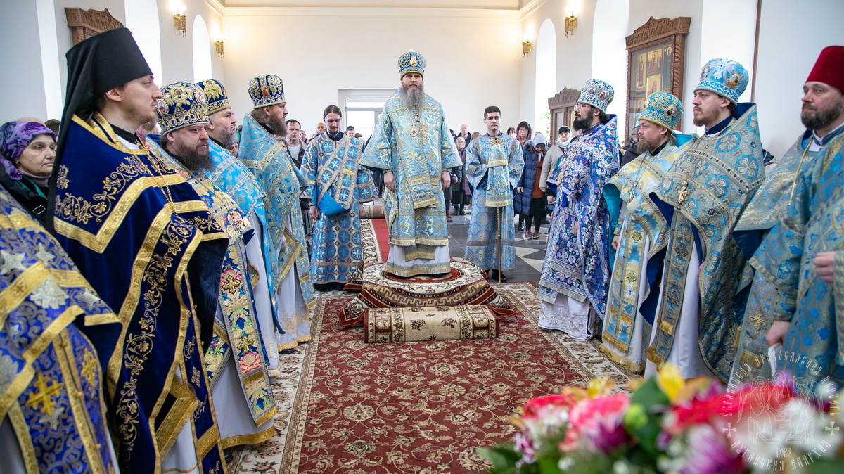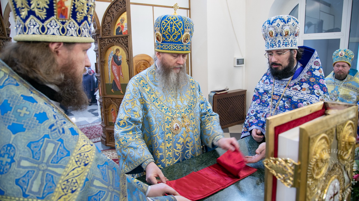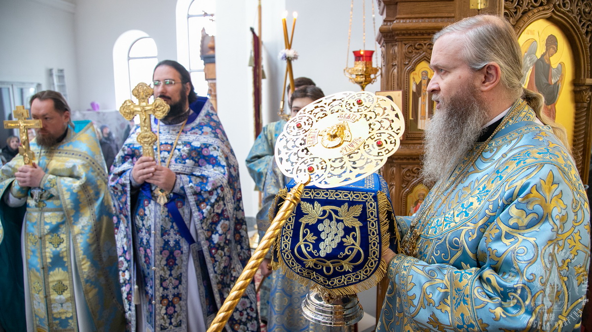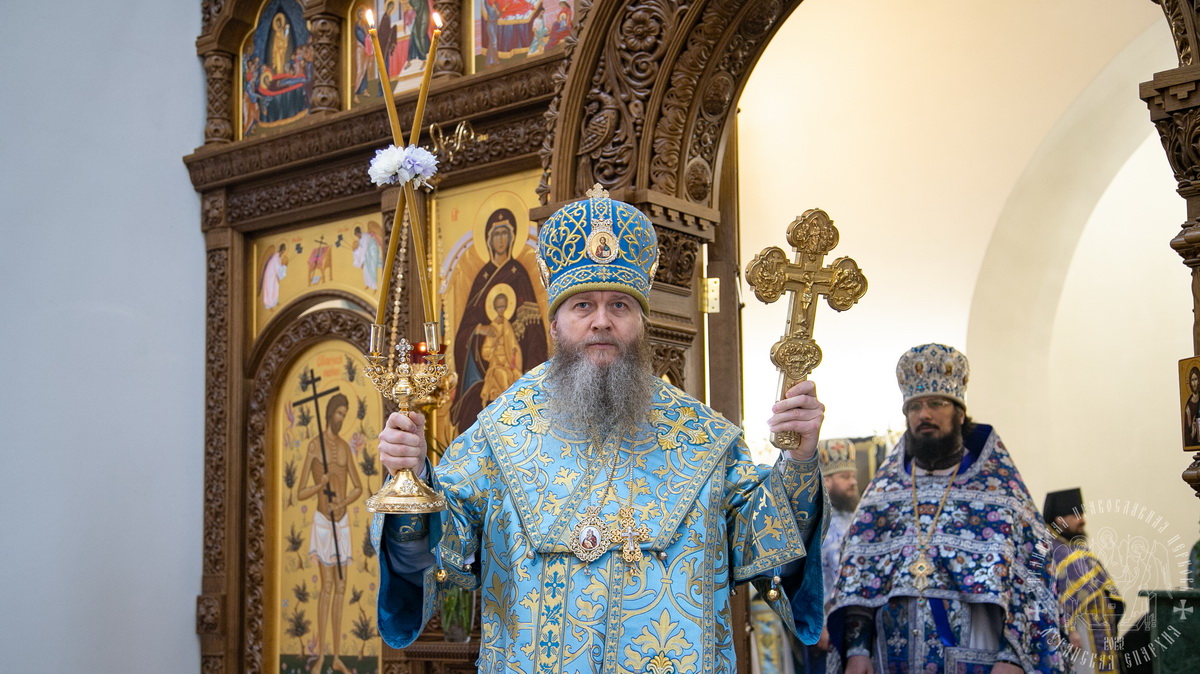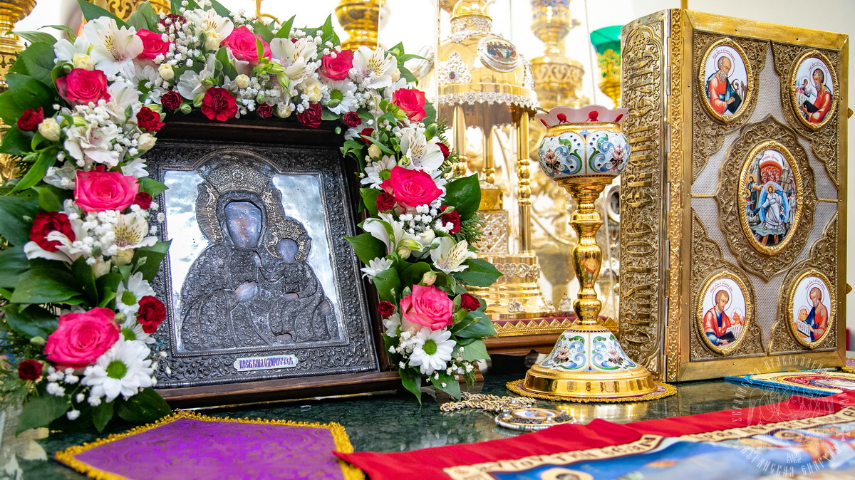 По окончании Литургии архипастырь вместе с духовенством совершил славление чествуемому образу Пресвятой Богородицы.