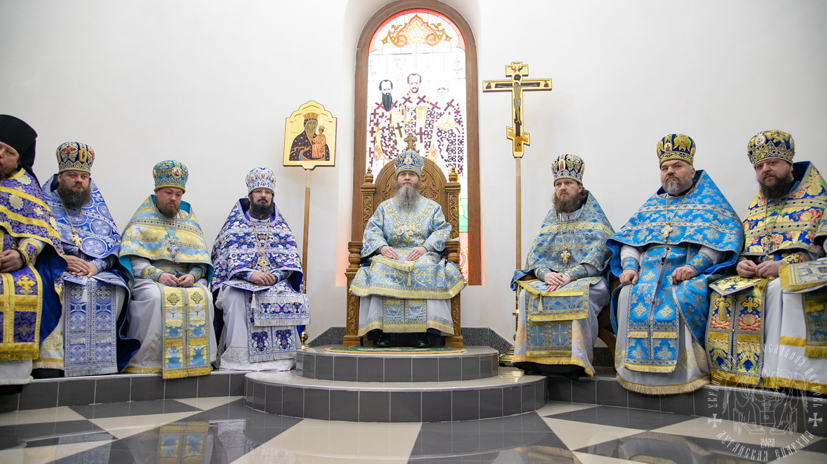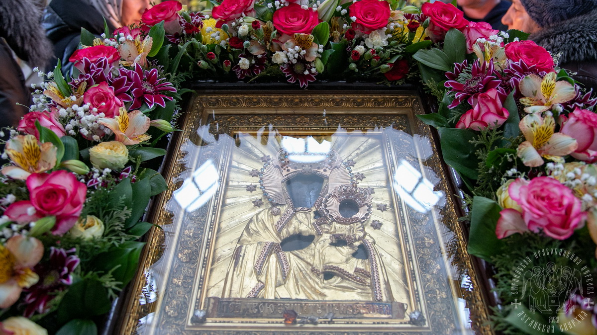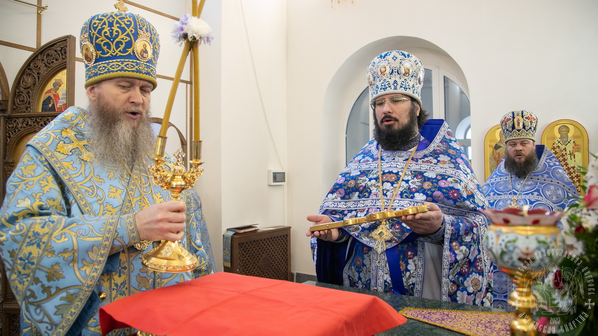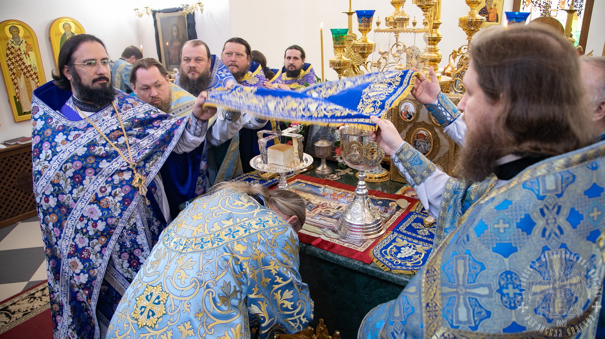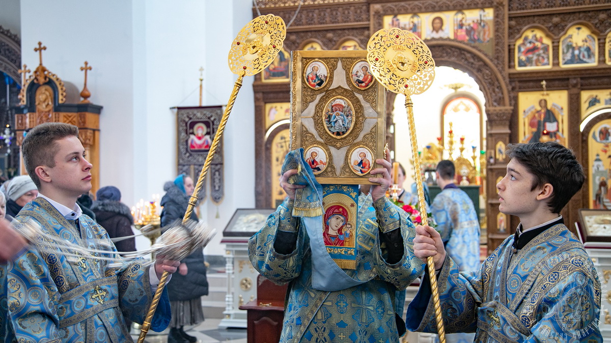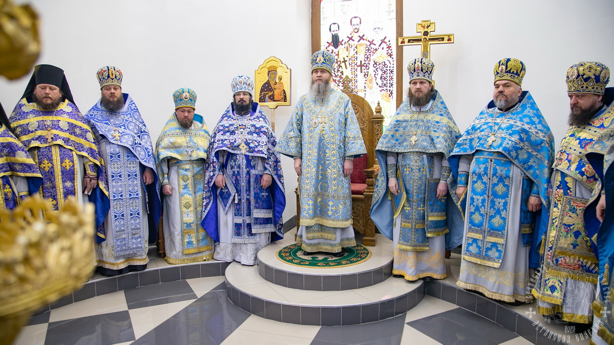 По окончании Литургии архипастырь вместе с духовенством совершил славление чествуемому образу Пресвятой Богородицы.