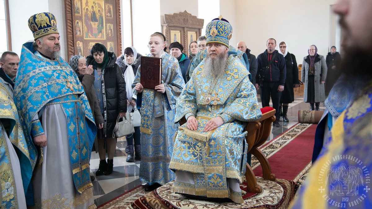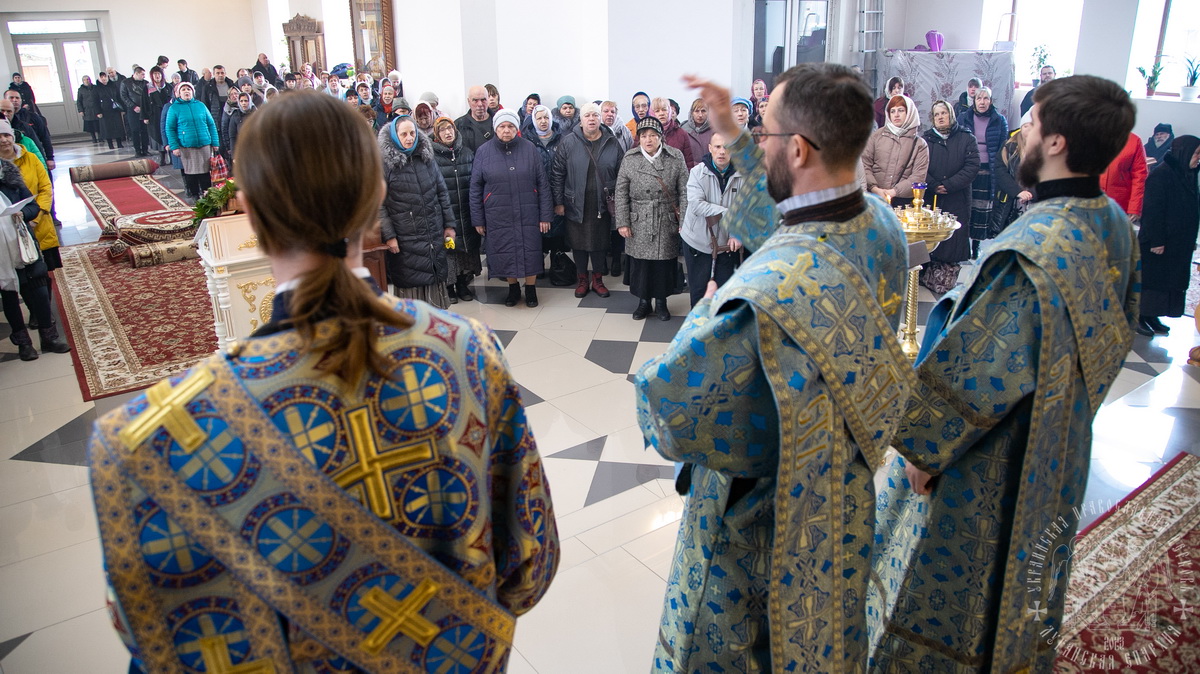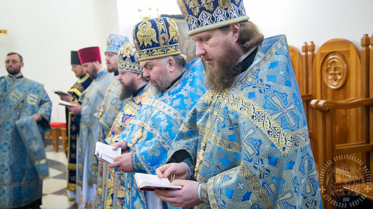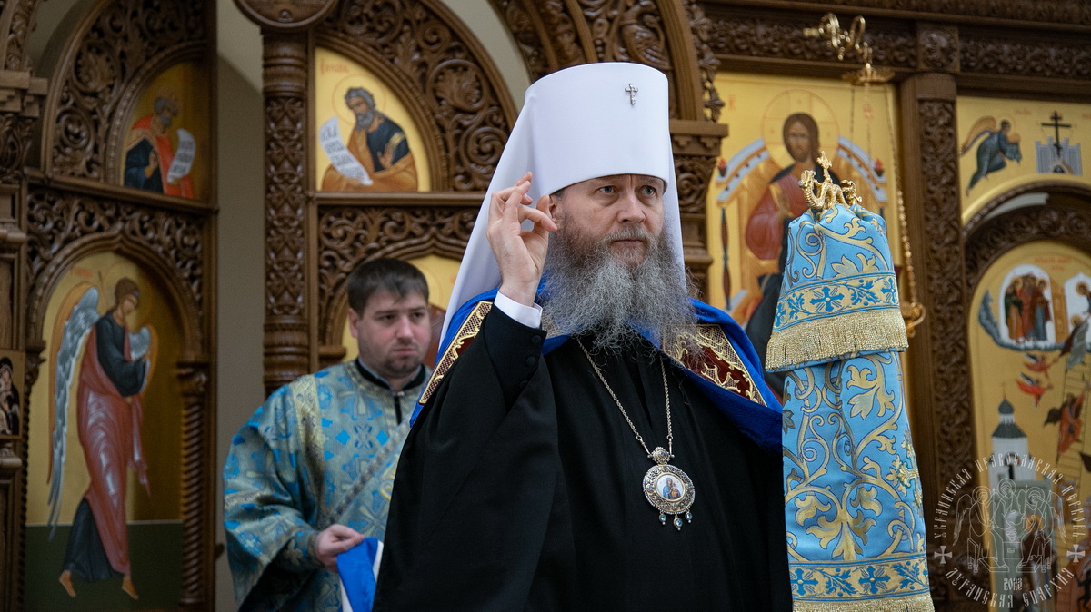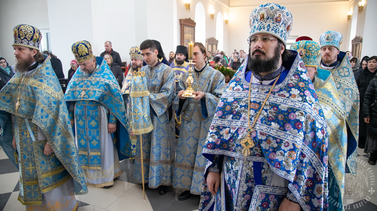 По окончании Литургии архипастырь вместе с духовенством совершил славление чествуемому образу Пресвятой Богородицы.