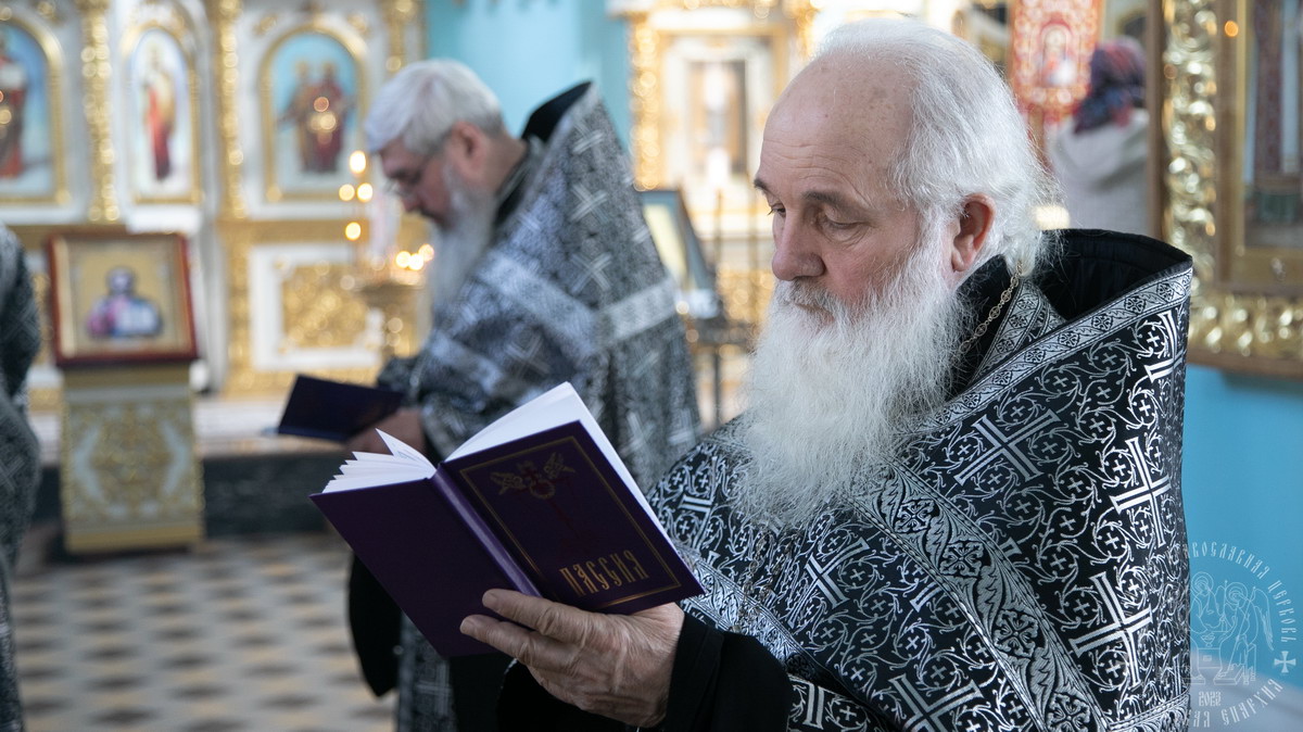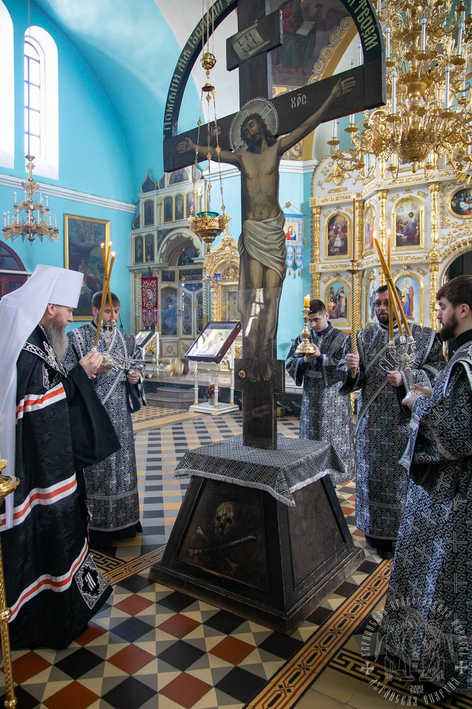После акафиста, владыка Пантелеимон прочел главы из Евангелия (Ин.18; Ин.19), повествующие о спасительных страданиях Господа нашего Иисуса Христа.