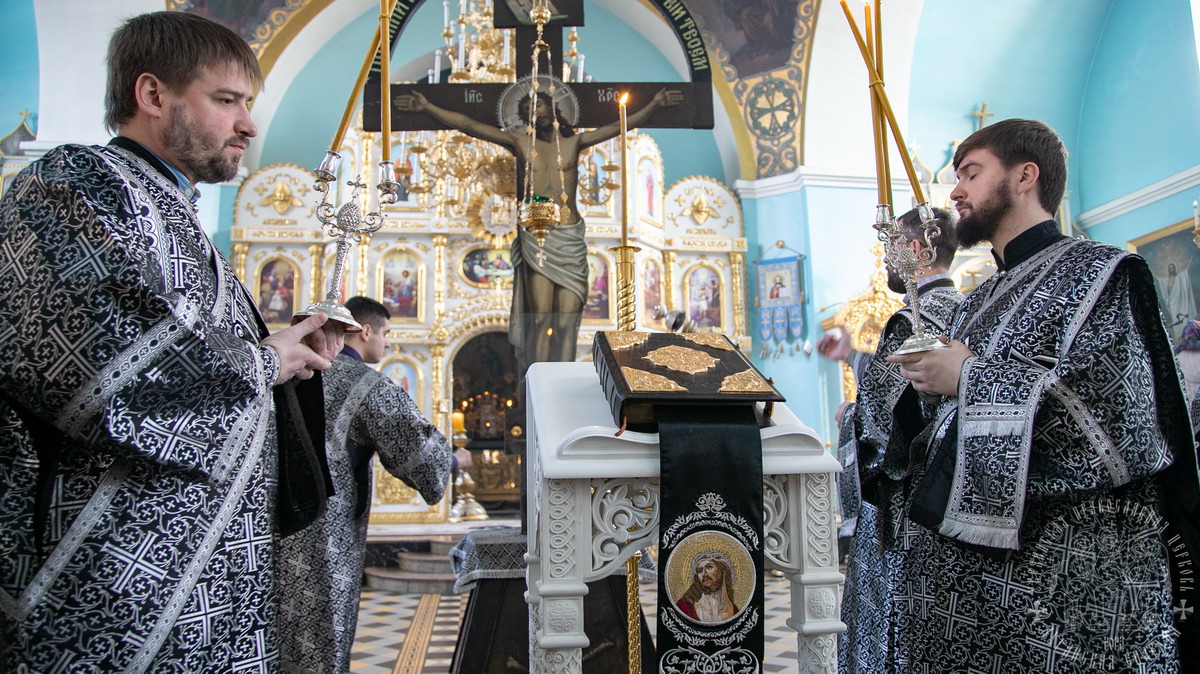 Вместе с архипастырем, в чтении акафиста Страстям Христовым принимали участие священнослужители кафедрального собора.