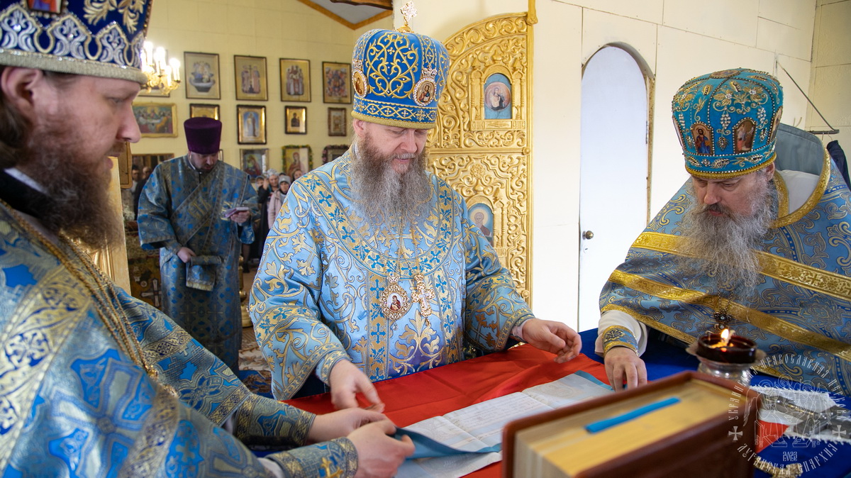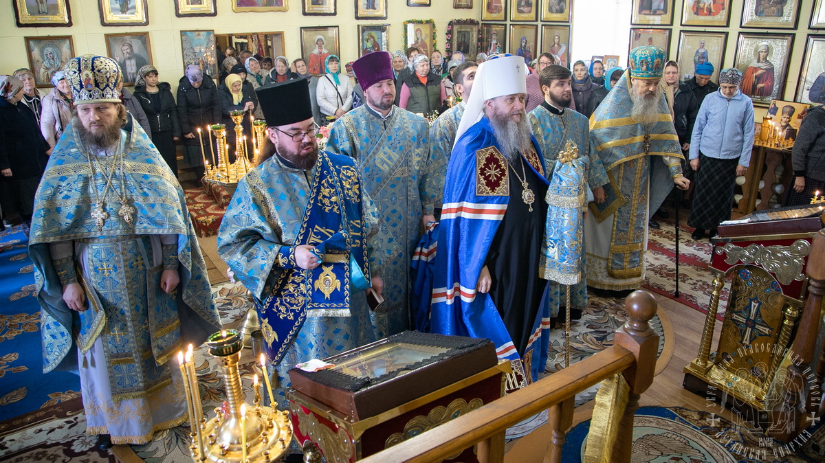 Вознеся молитву Божией Матери, владыка Пантелеимон поздравил всех участников торжества с престольным праздником и пожелал, чтобы Царица Небесная была Заступницей и Молитвенницей о всех притекающих в Ее святой храм.