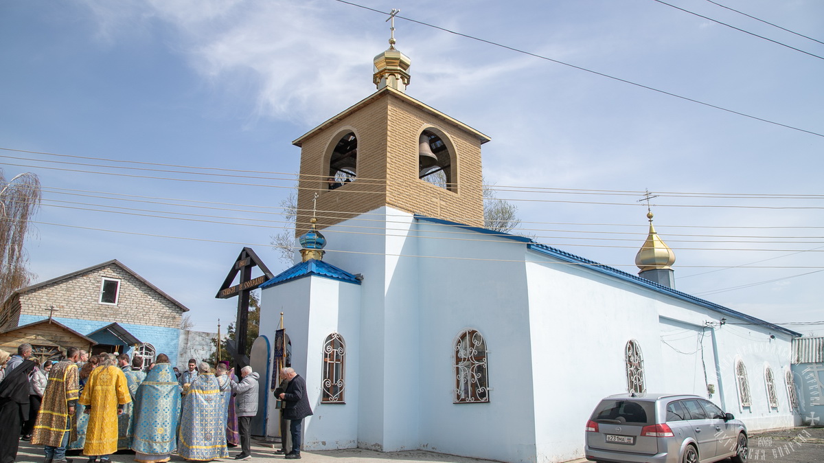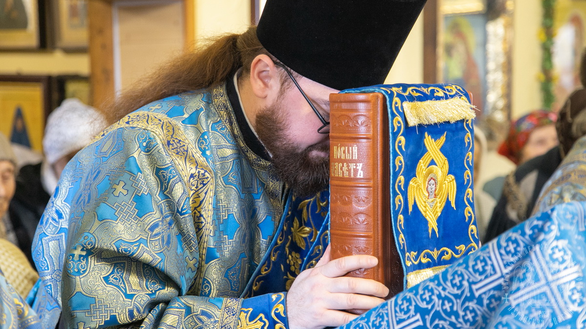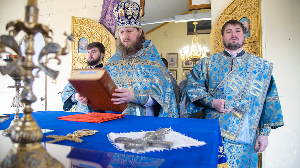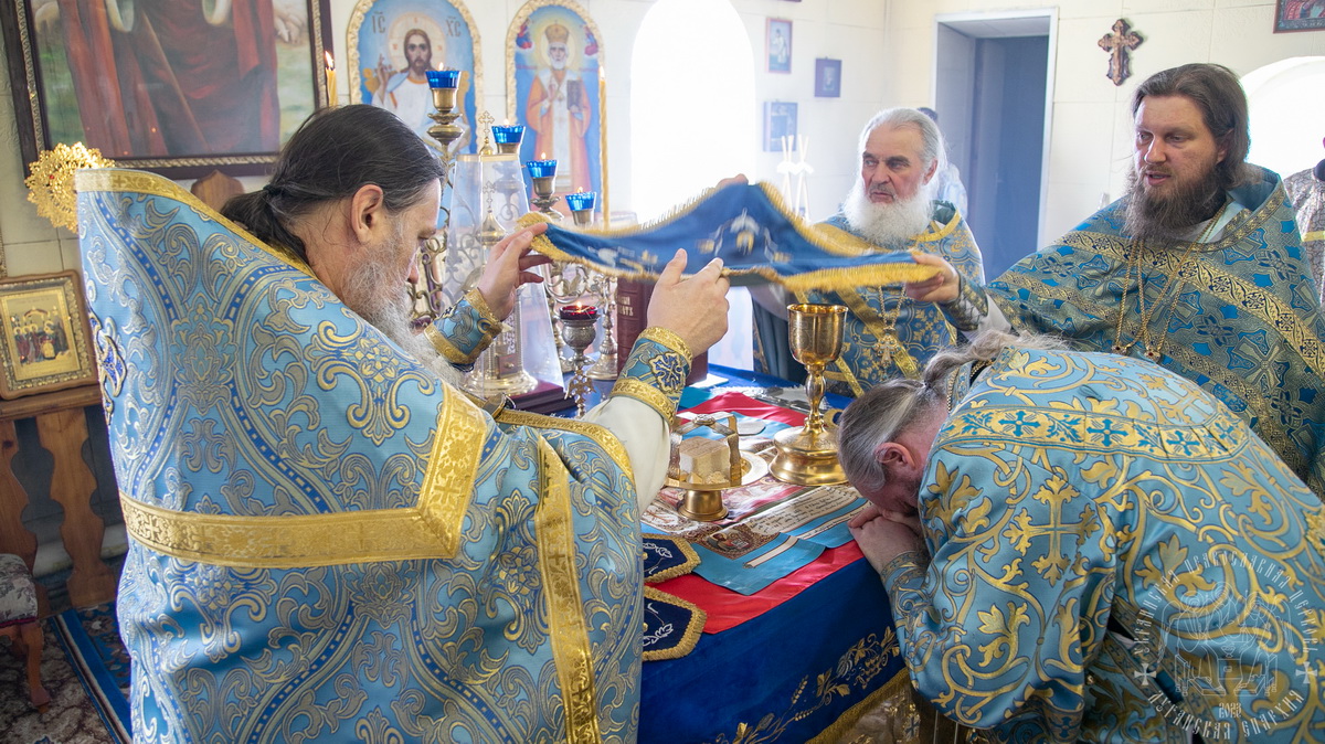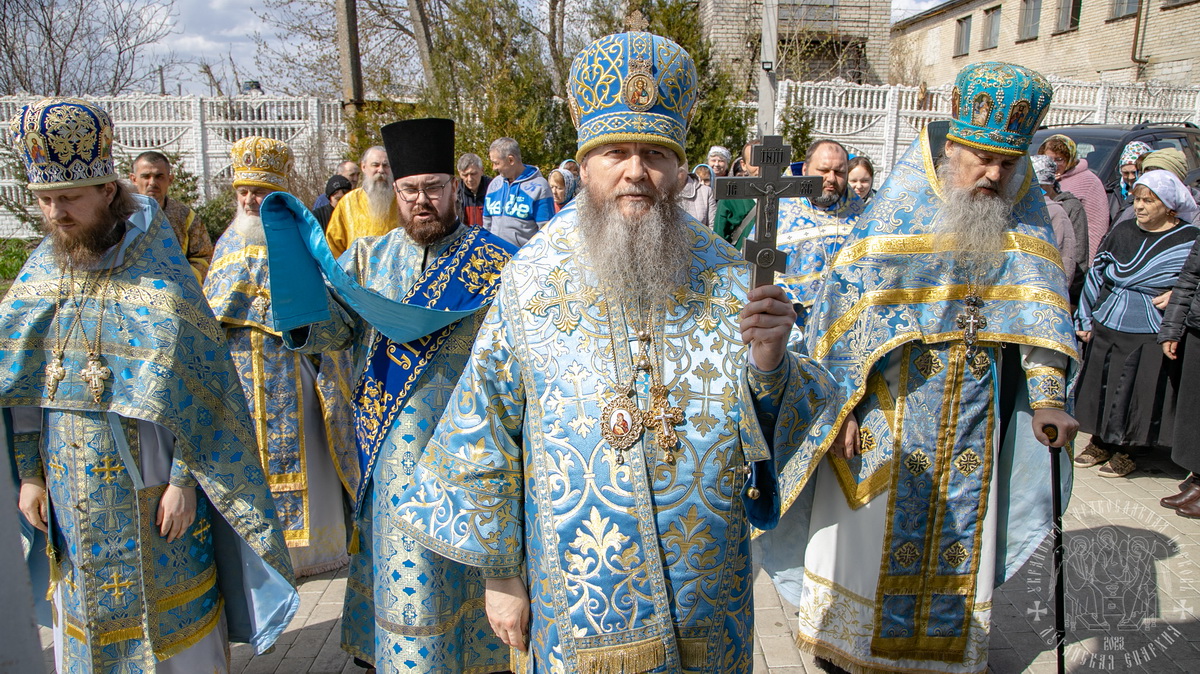 По окончании Литургии духовенство и верующий народ во главе с архиереем прошли крестным ходом вокруг храма, воспевая Пресвятую Богородицу.