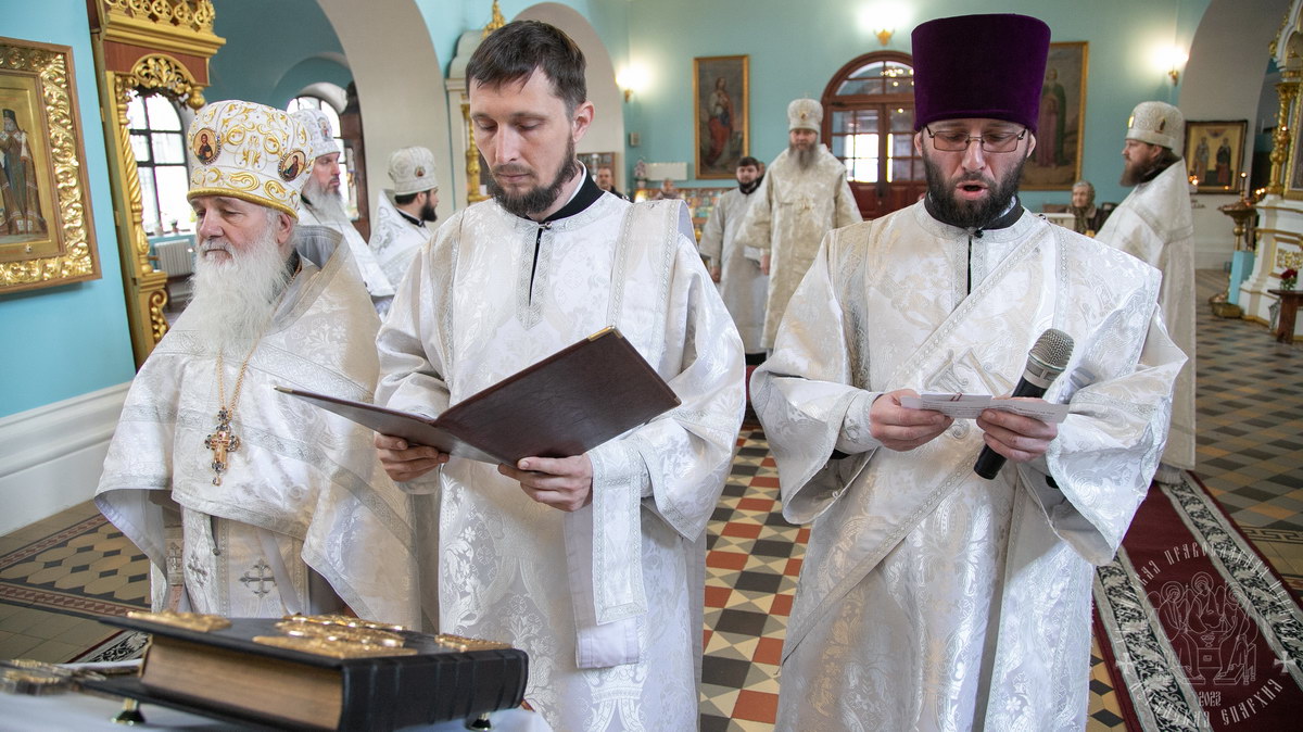 По окончании Литургии было совершено славление праздника Благовещения Пресвятой Богородицы, после чего владыка Пантелеимон обратился с проповедью к молящимся.