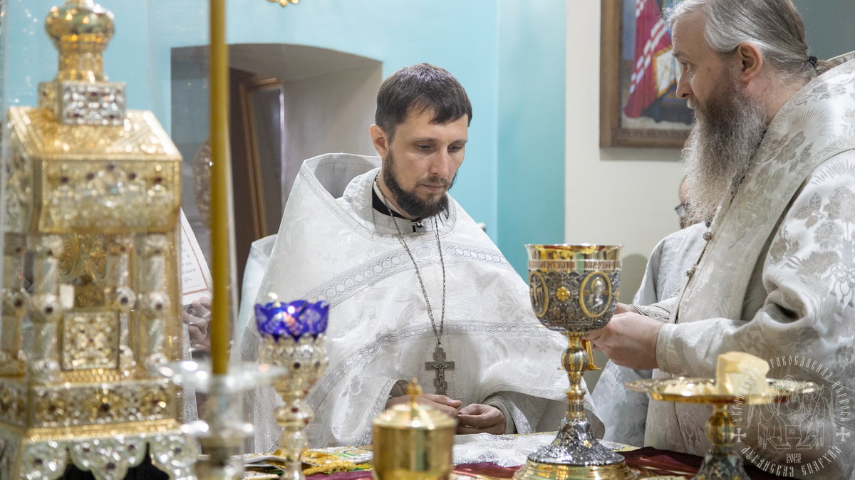 За Божественной литургией Его Высокопреосвященству сослужил секретарь епархии прот. Андрей Зозуля, благочинный Станично Луганского округа прот. Алексий Храбров, а также духовенство кафедрального собора.
