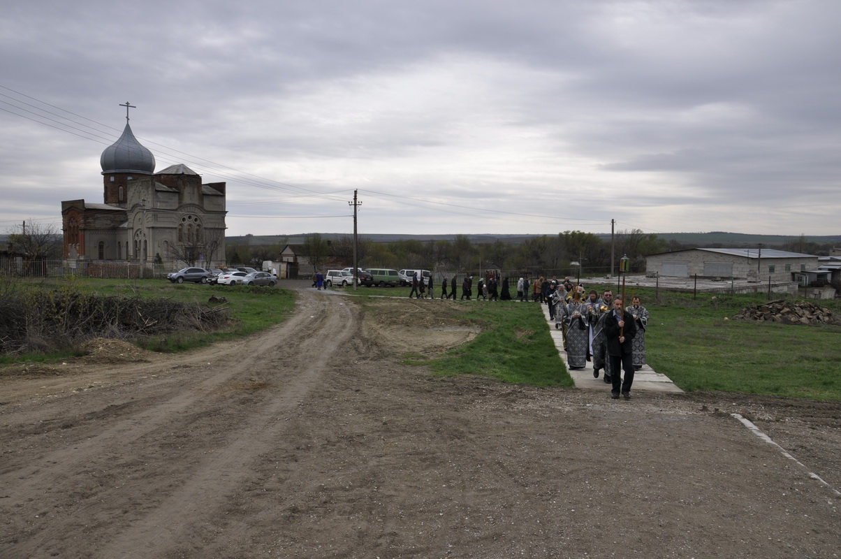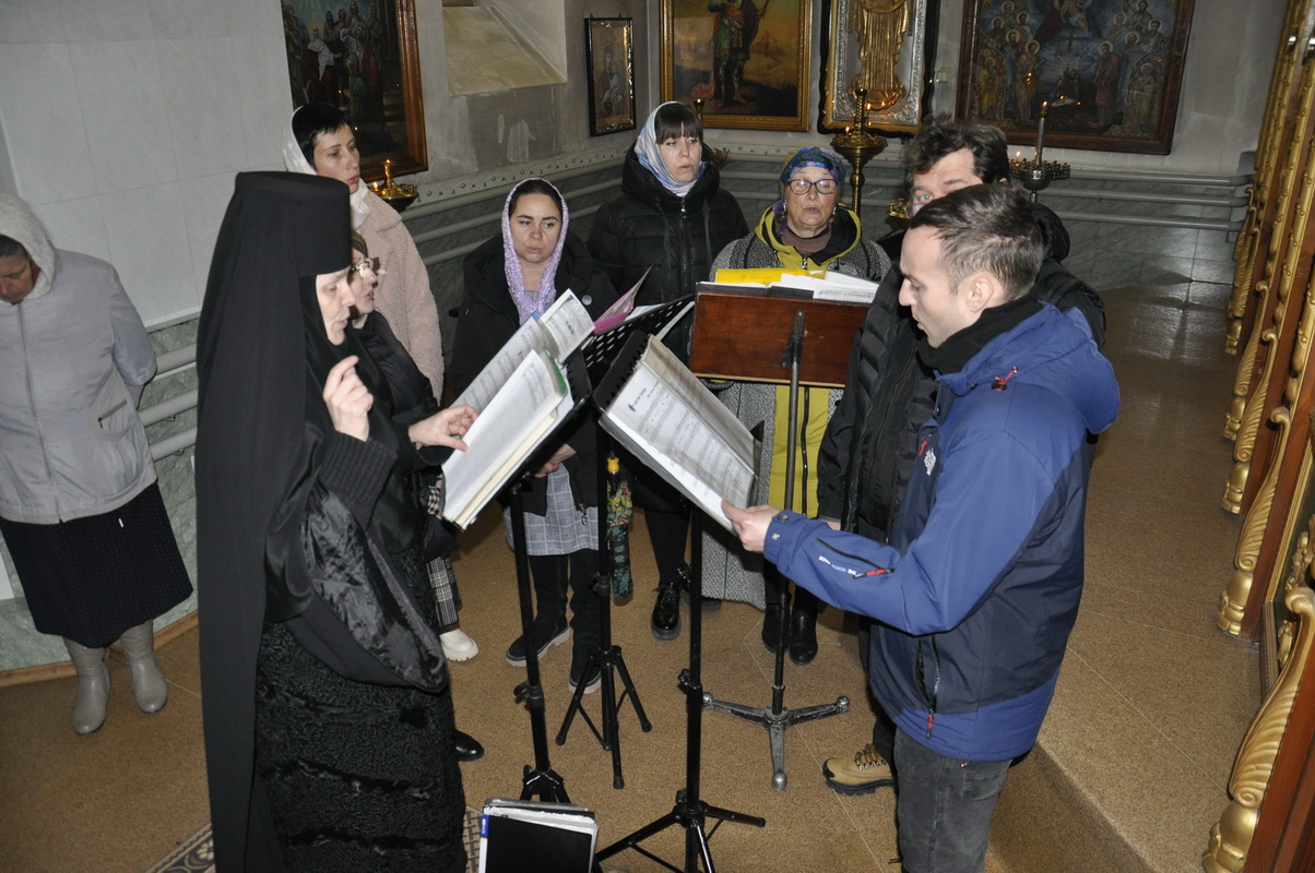 По традиции, богослужение начавшееся в главном храме монастырского комплекса, во время Великого входа было продолжено в одном из храмов посвященных дням Страстной седмицы.