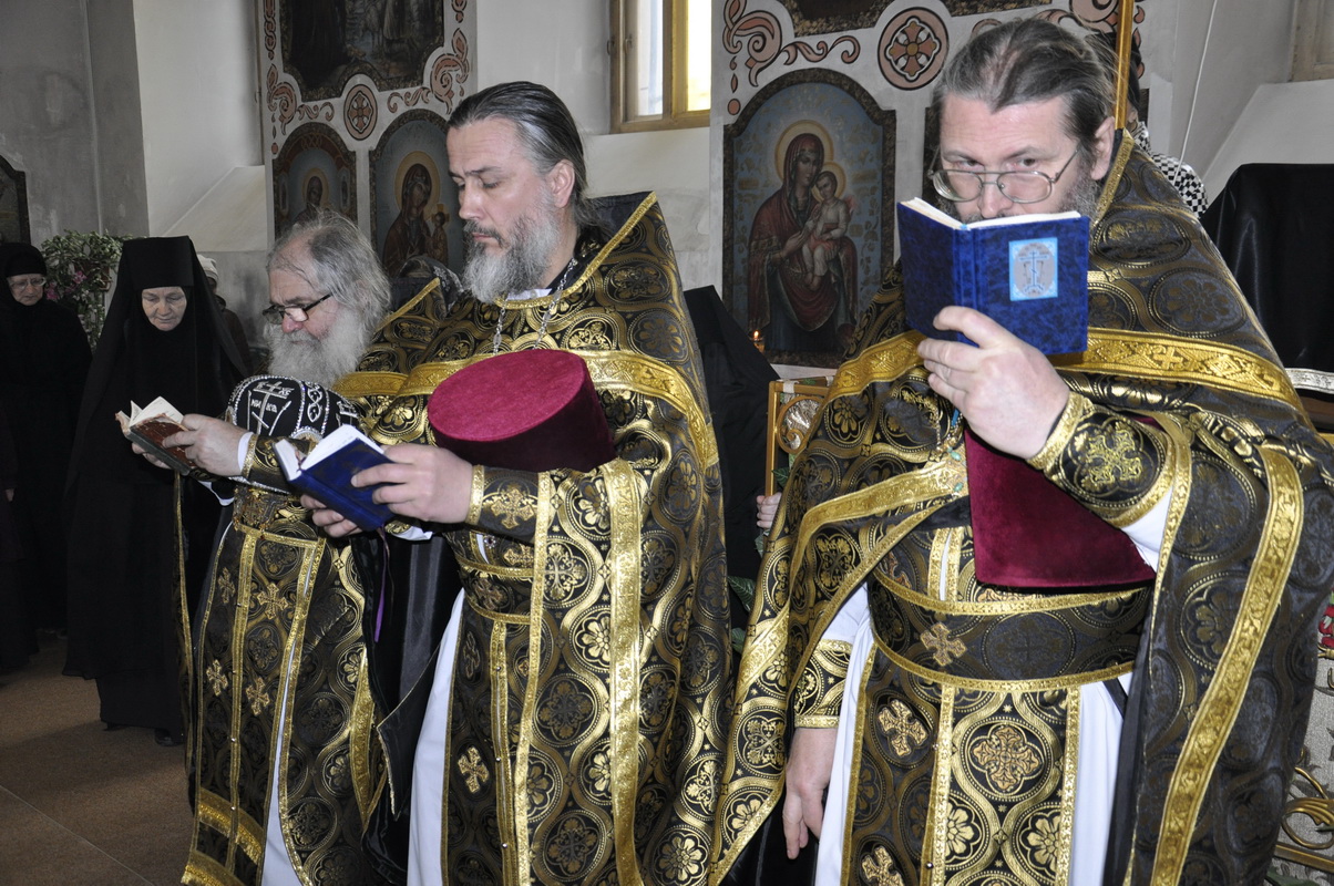За Литургией Его Высокопреосвященству сослужил секретарь епархии прот. Андрей Зозуля, строитель монастыря прот. Андрей Дубина, а также духовенство обители.