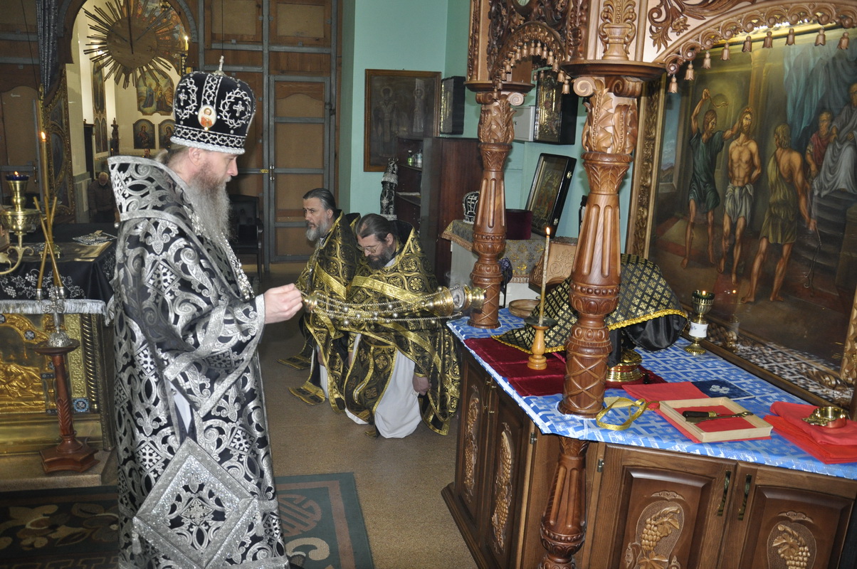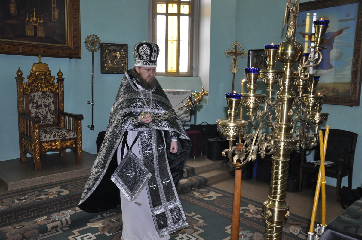 12 апреля, в Великую среду, Высокопреосвященнейший Пантелеимон, митрополит Луганский и Алчевский, совершил Литургию Преждеосвященных Даров в Свято-Введенском храме, на подворье Свято-Ольгинского женского монастыря в селе Красное.