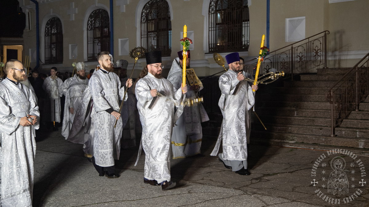 В ночь с 15 на 16-е апреля 2023 года, Высокопреосвященнейший Пантелеимон, митрополит Луганский и Алчевский, совершил Полунощницу, Крестный ход, Пасхальную заутреню и Божественную литургию свт. Иоанна Златоуста в Свято-Петропавловском кафедральном соборе.
