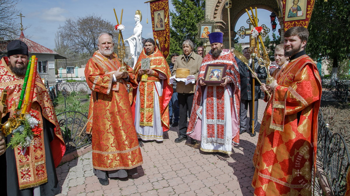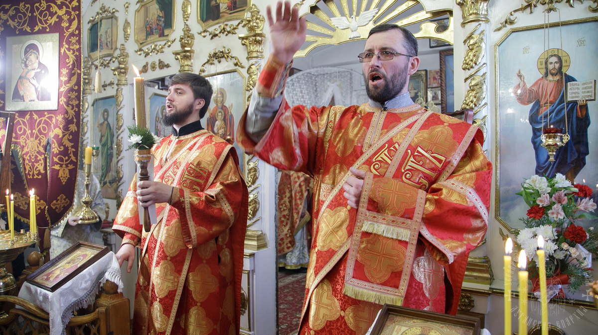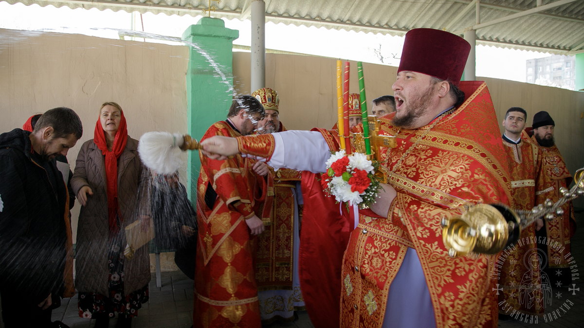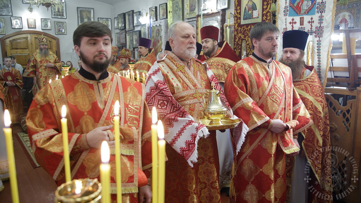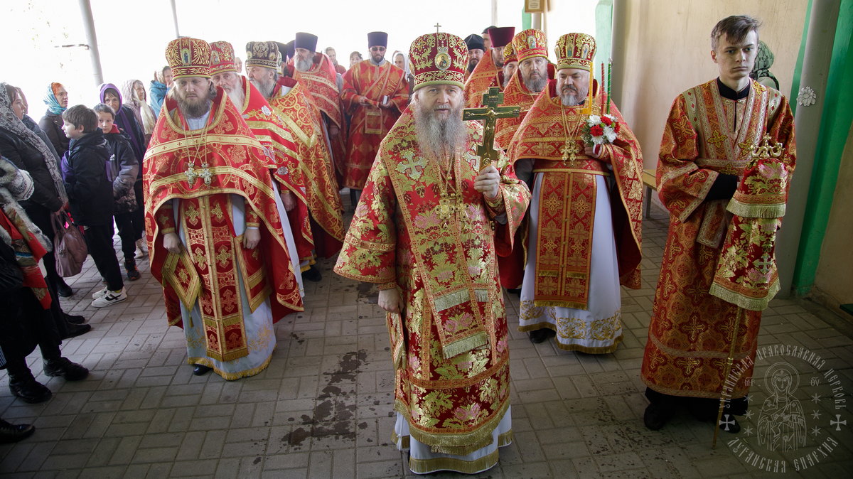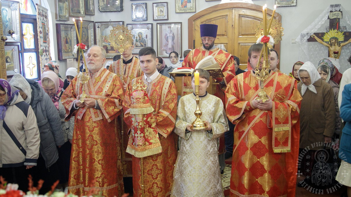 Его Высокопреосвященству сослужил секретарь епархии прот. Андрей Зозуля, благочинный Алчевского округа прот. Александр Устименко, благочинный Перевальского округа и настоятель храма прот. Роман Колодка, а также духовенство благочиния.
