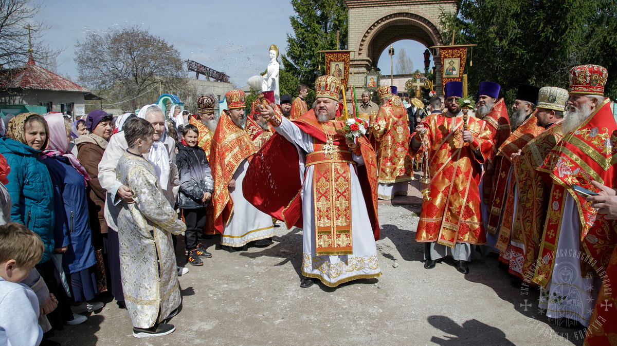 По окончании Литургии, духовенство и верующий народ во главе с архипастырем, совершили Пасхальный крестный ход.