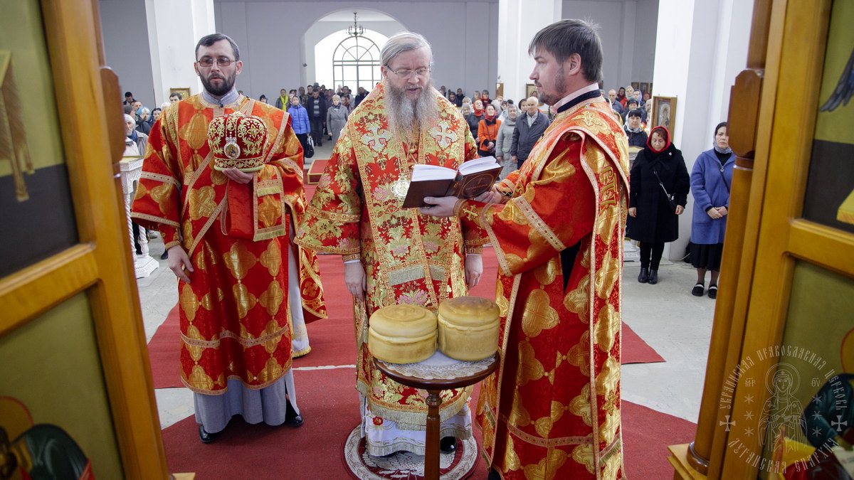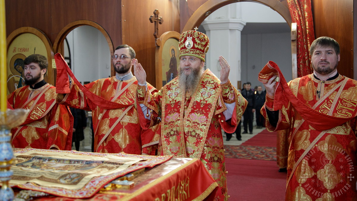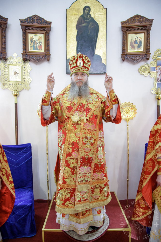 После сугубой ектении, владыка вознес молитву о мире и умножении любви среди народа Отечества нашего и молитву об исцелении болящих.