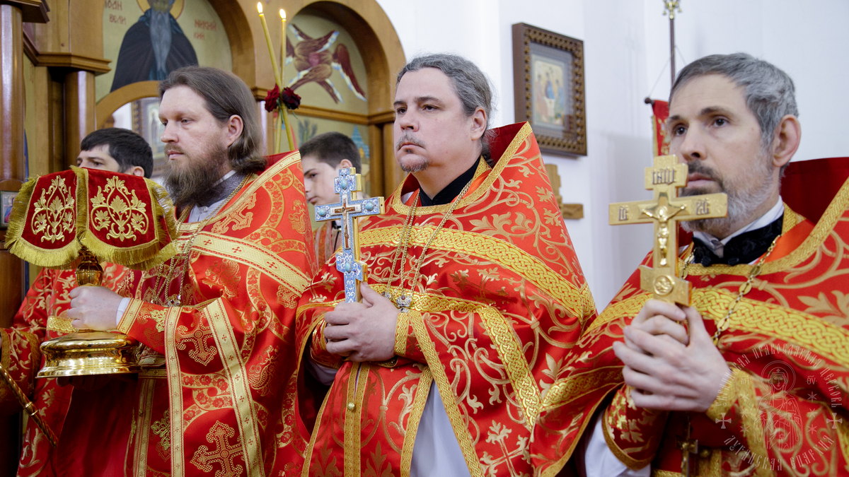 За Божественной Его Высокопреосвященству сослужил секретарь епархии прот. Андрей Зозуля, настоятель храма и благочинный центрального церковного округа прот. Александр Пономарев, а также приходское духовенство.