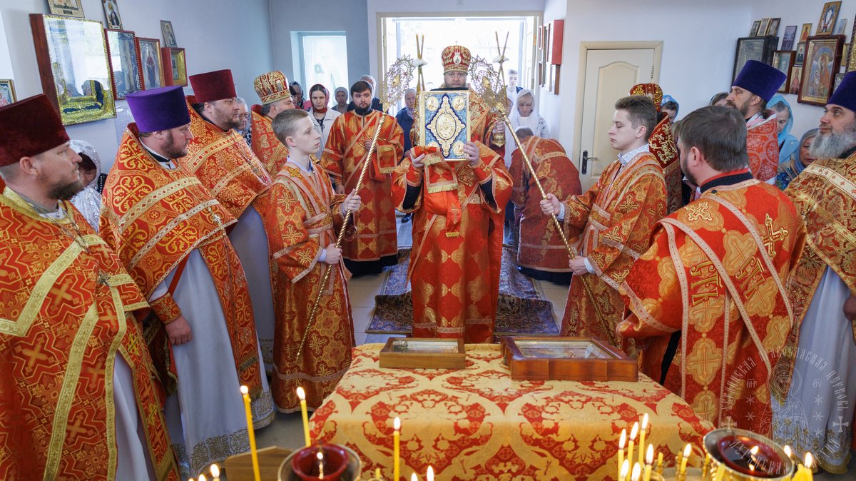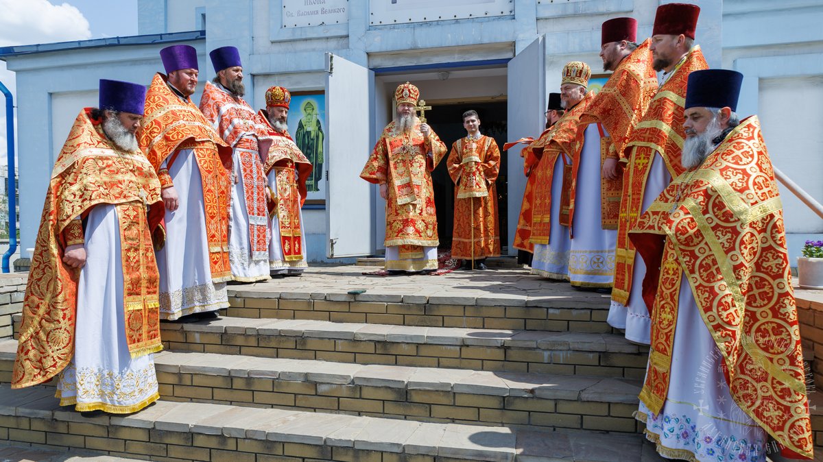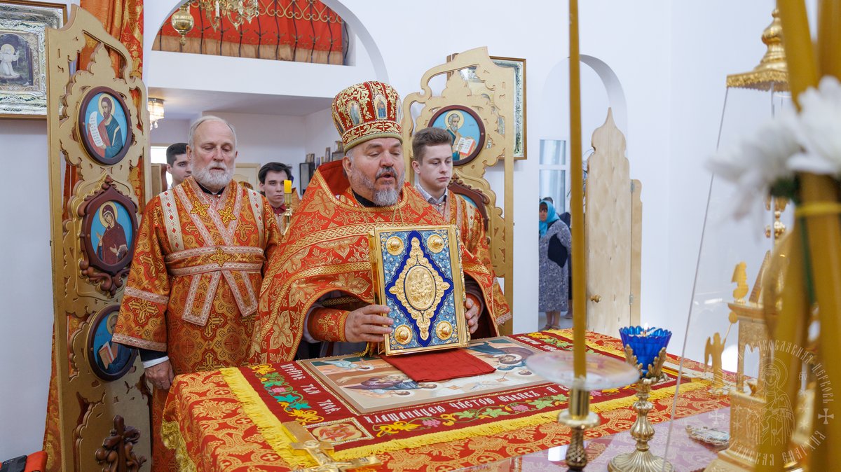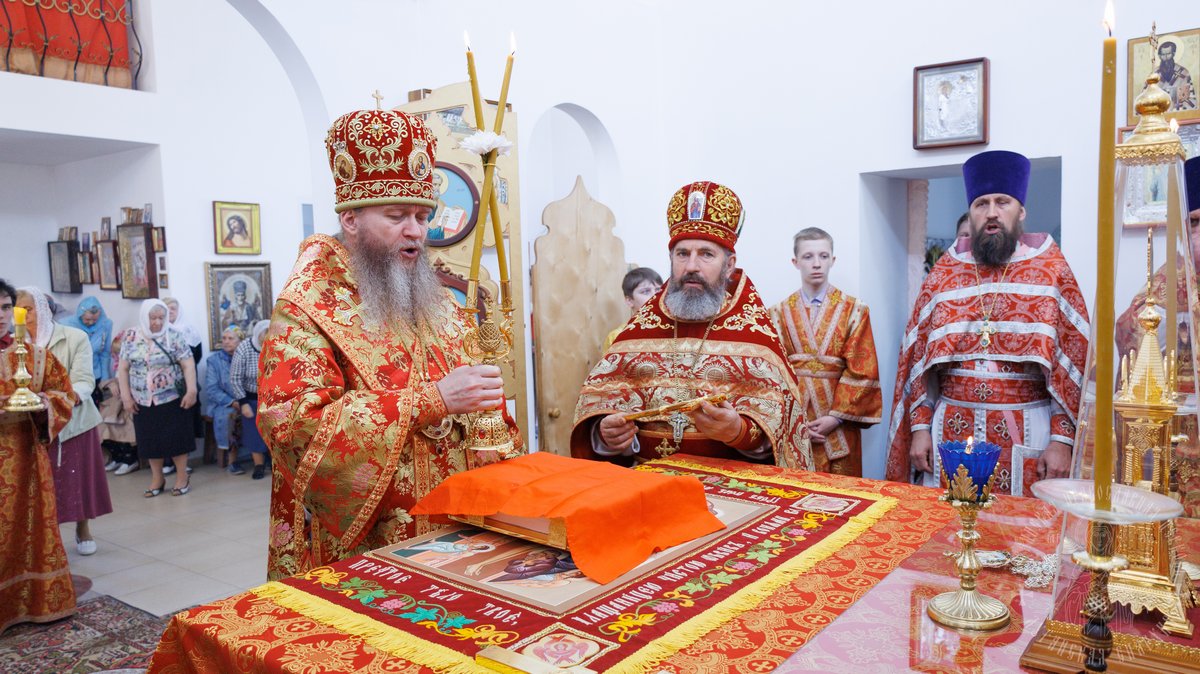 По завершении крестного хода и молебного пения, владыка Пантелеимон поздравил сослужившее духовенство, верующий народ с престольным днем храма и преподал архипастырское благословение.