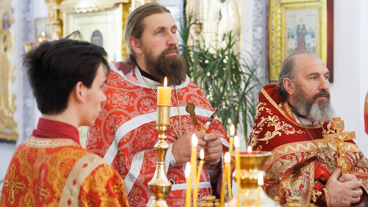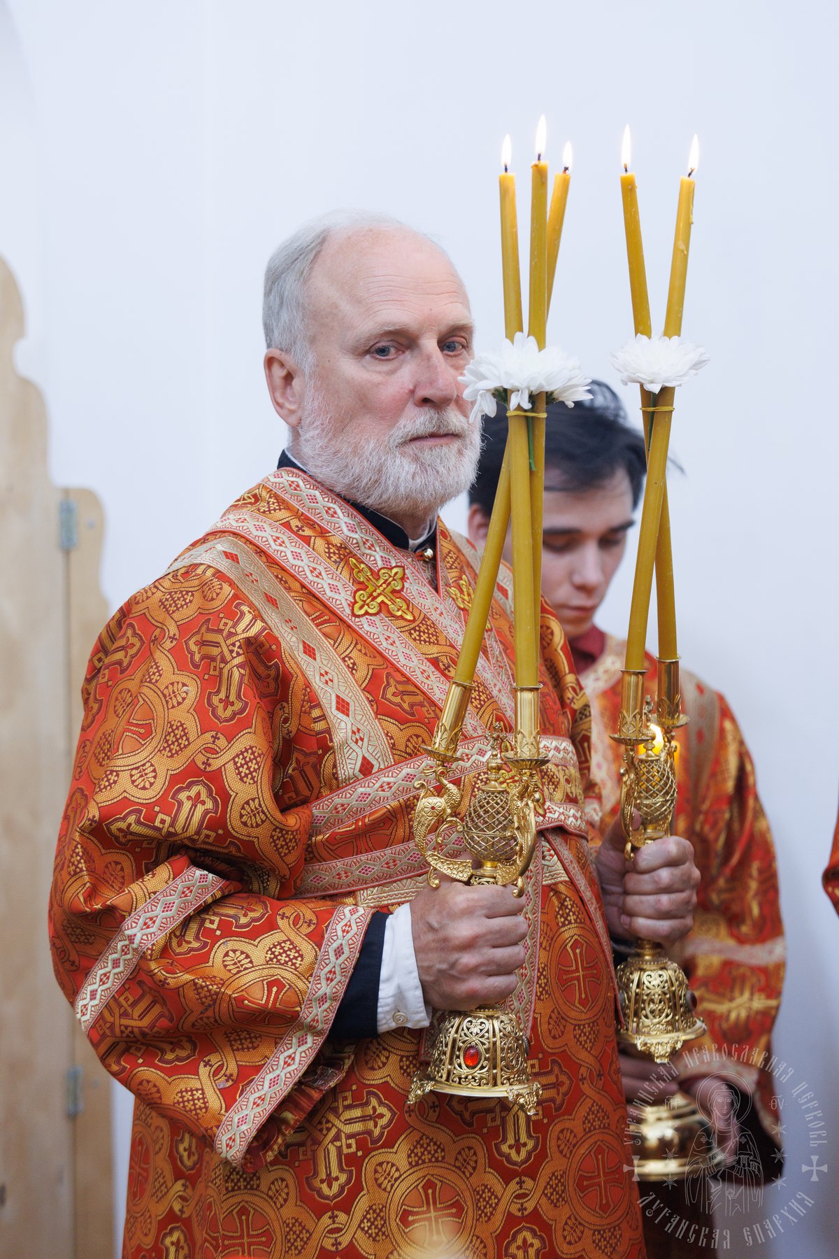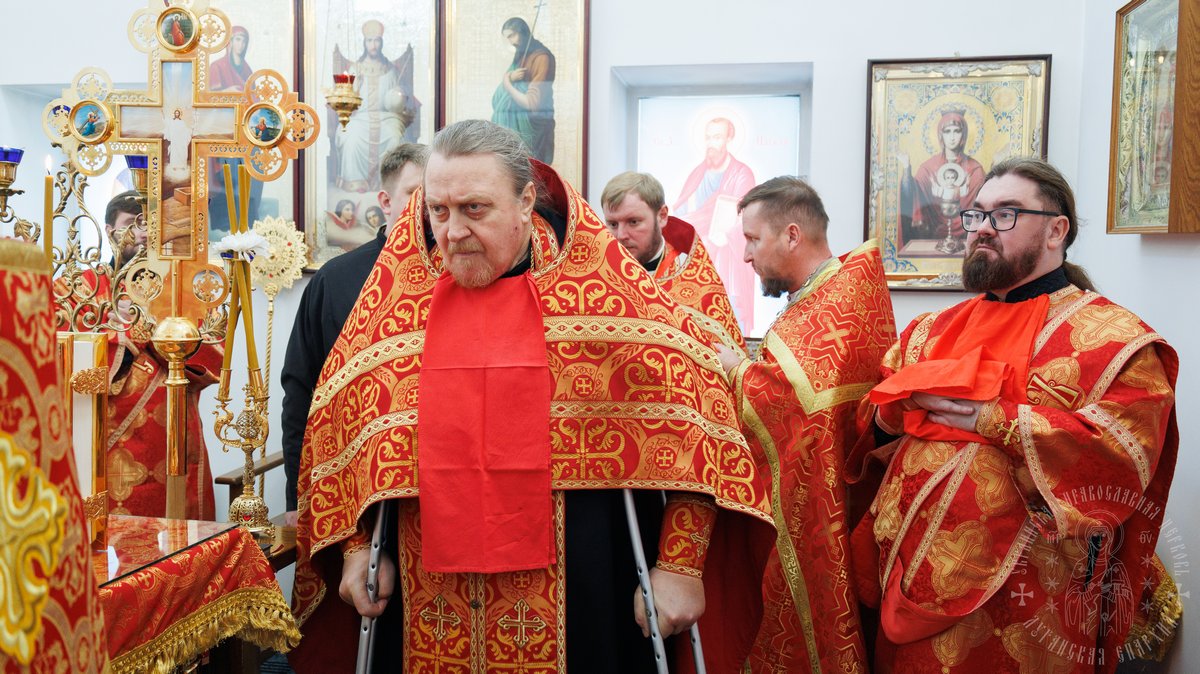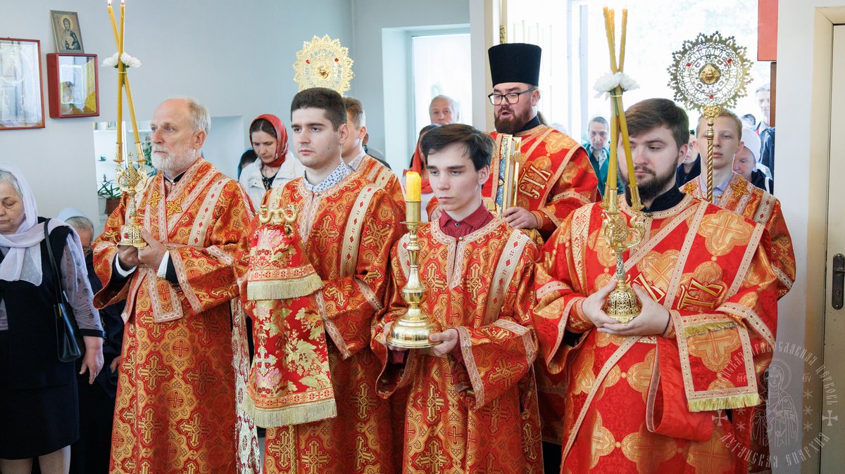 За Литургией Его Высокопреосвященству сослужил благочинный Алчевского округа прот. Александр Устименко, благочинный Перевальского округа прот. Роман Колодка, приглашенное духовенство, а также за богослужением молился настоятель храма прот. Пётр Процюк.