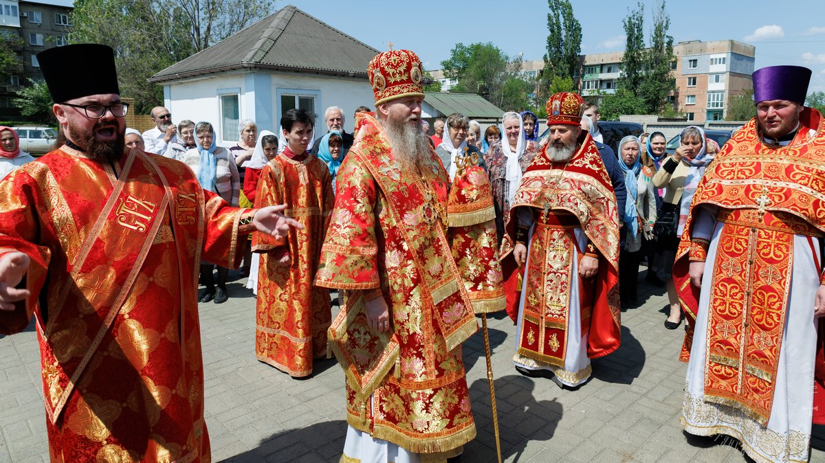 По окончании Литургии духовенство и верующий народ, во главе с архипастырем, прошли крестным ходом вокруг храма, воспевая Воскресшего Христа, Его Пречистую Матерь и святую великомученицу Ирину, память которой сегодня чтит Святая Церковь.