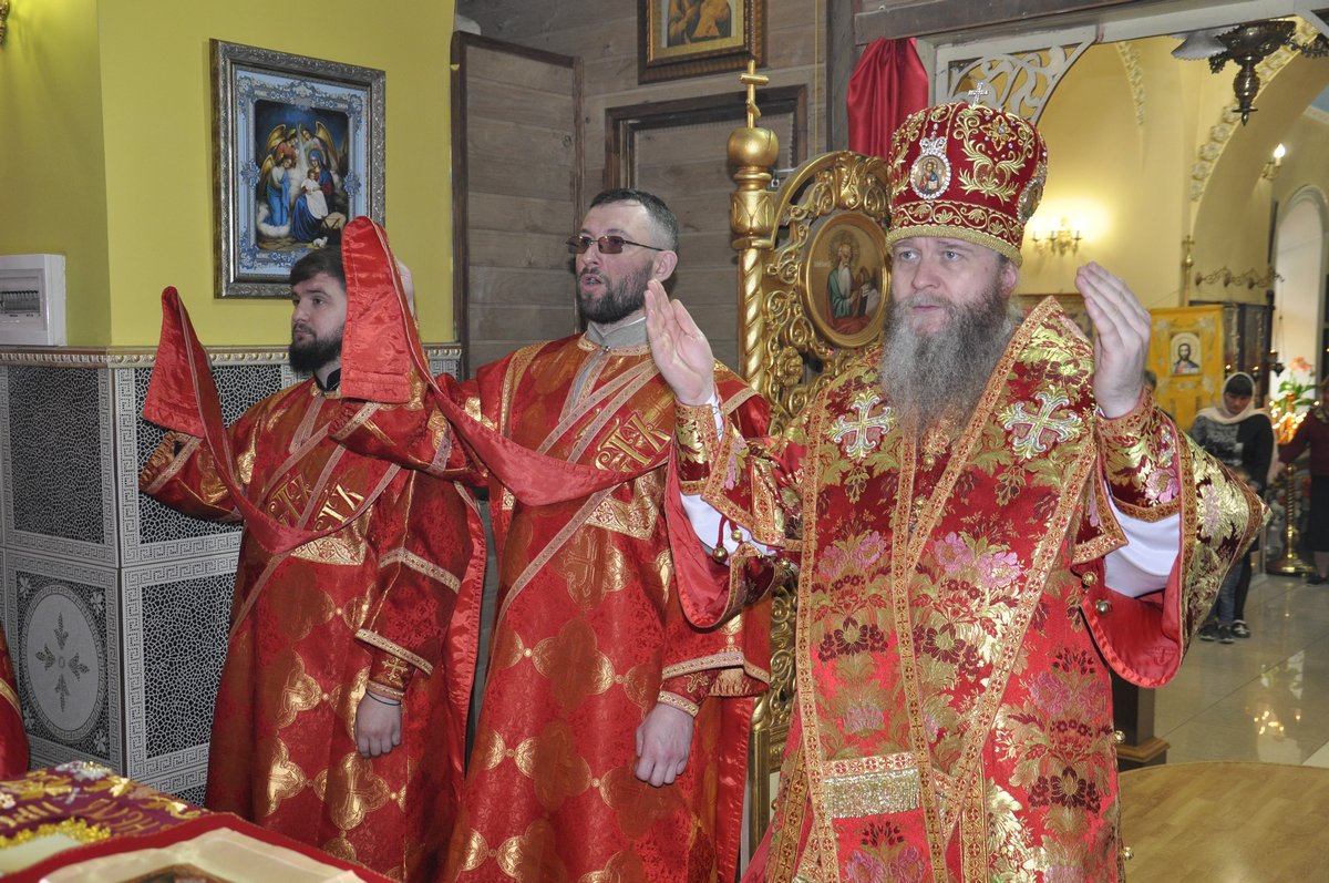 После сугубой ектении, владыка вознес молитву о мире и умножении любви среди народа Отечества нашего и молитву об исцелении болящих.