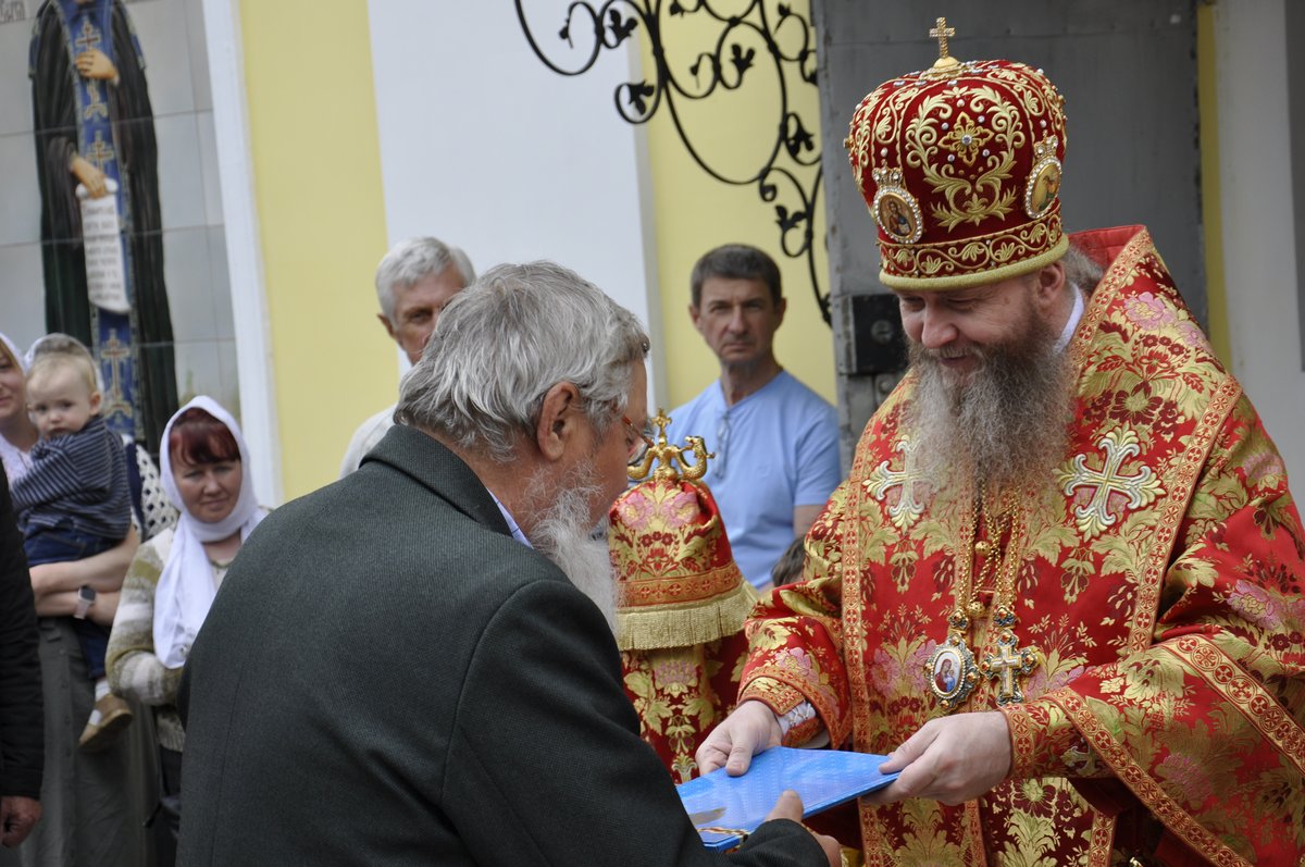 По завершении молебна, владыка Пантелеимон поздравил духовенство и паству с престольным храмовым праздником, после чего вручил благословенные архиерейские грамоты труженикам прихода.