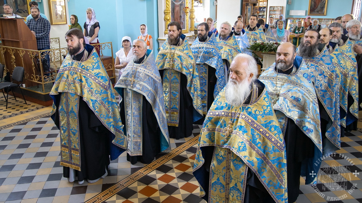 14 июля, Высокопреосвященнейший Пантелеимон, митрополит Ровеньковский и Свердловский, временно управляющий Луганской епархией, и Преосвященнейший Иринарх, епископ Новопсковский, совершили молебное акафистное пение в Свято-Петропавловском кафедральном соборе.