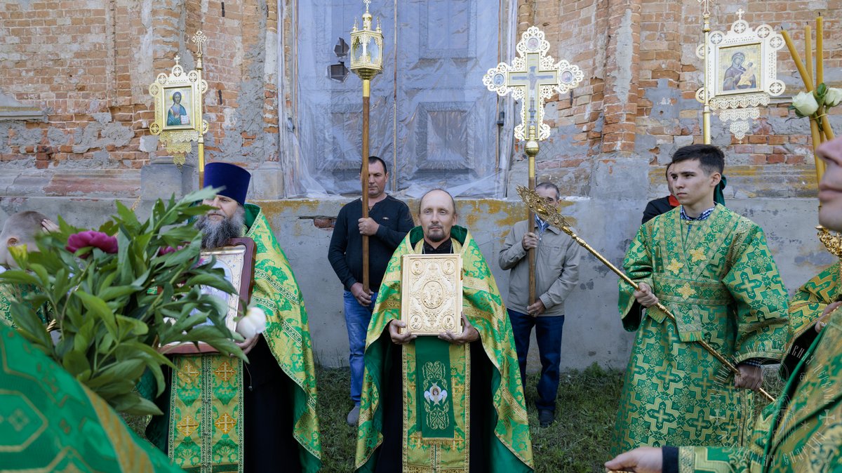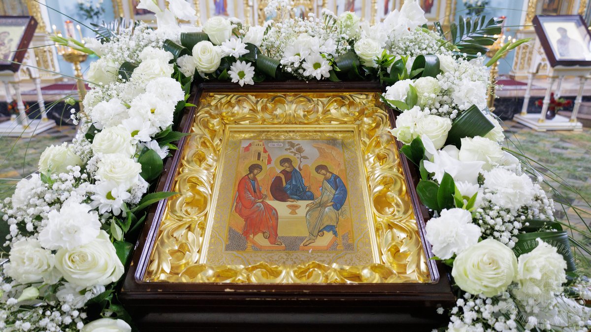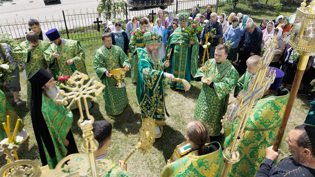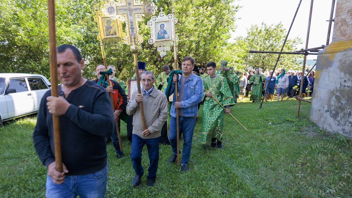 Затем, все участники праздничного богослужения прошли крестным ходом вокруг храма, прославляя Святую Троицу в церковных песнопениях.