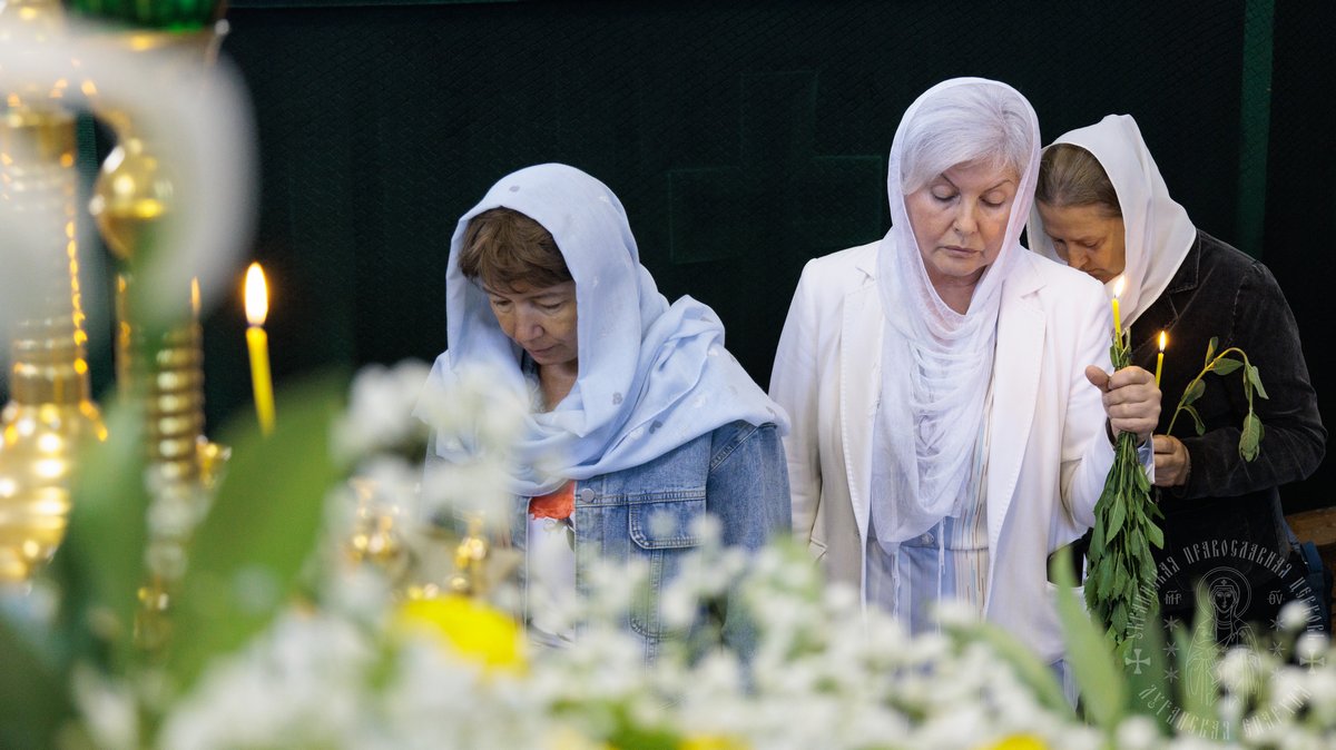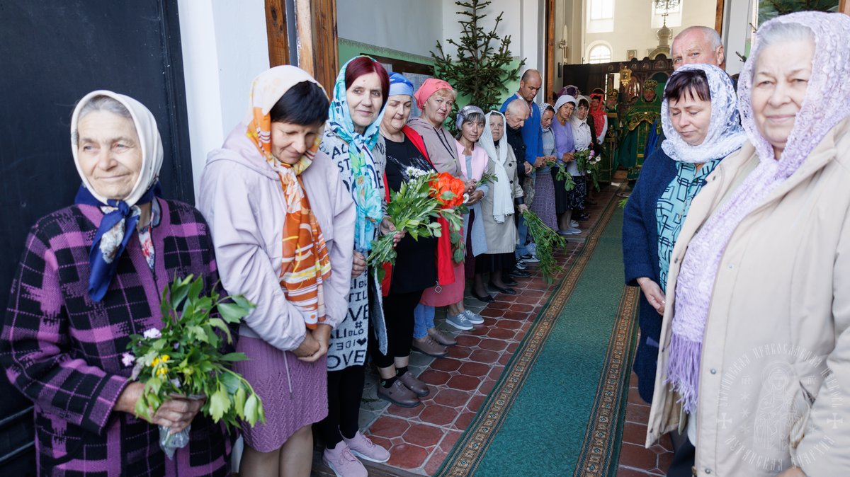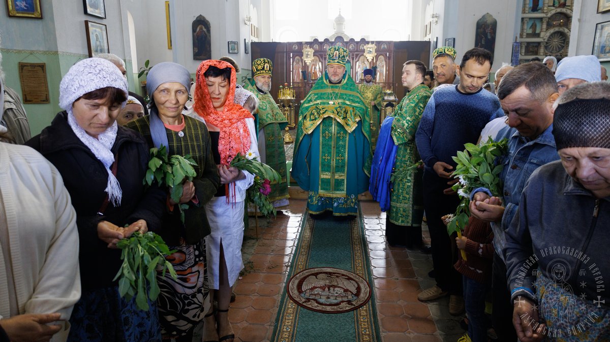 В завершение богослужения, владыка поздравил паству с престольным праздником, после чего окропили святой водой верующих и благовонные травы.