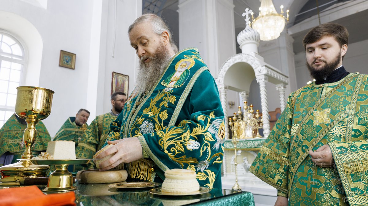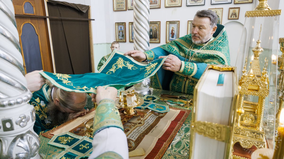Накануне праздника владыка совершил Всенощное бдение в Свято-Петро-Павловском кафедральном соборе.