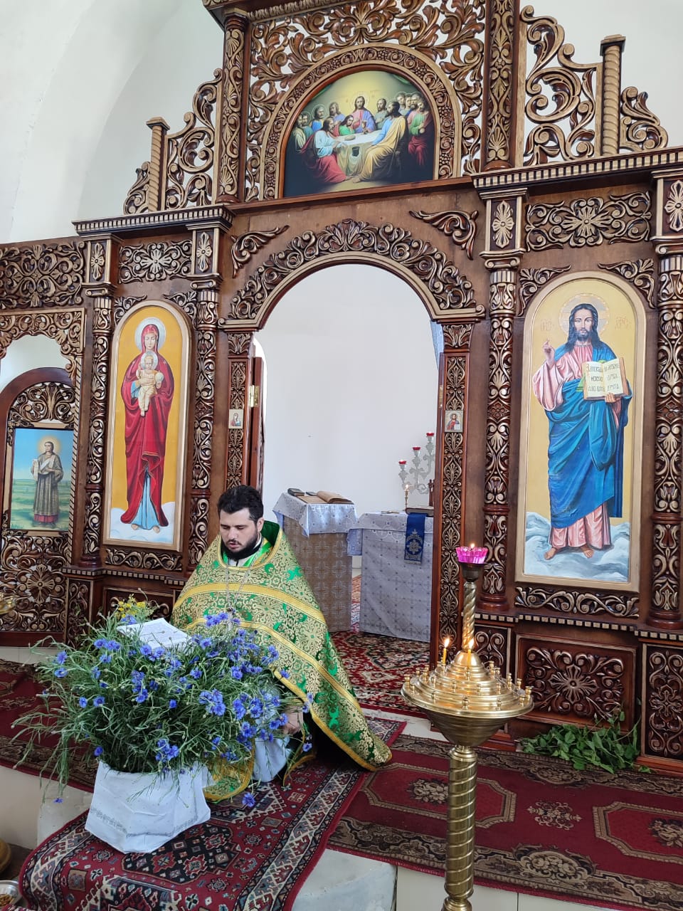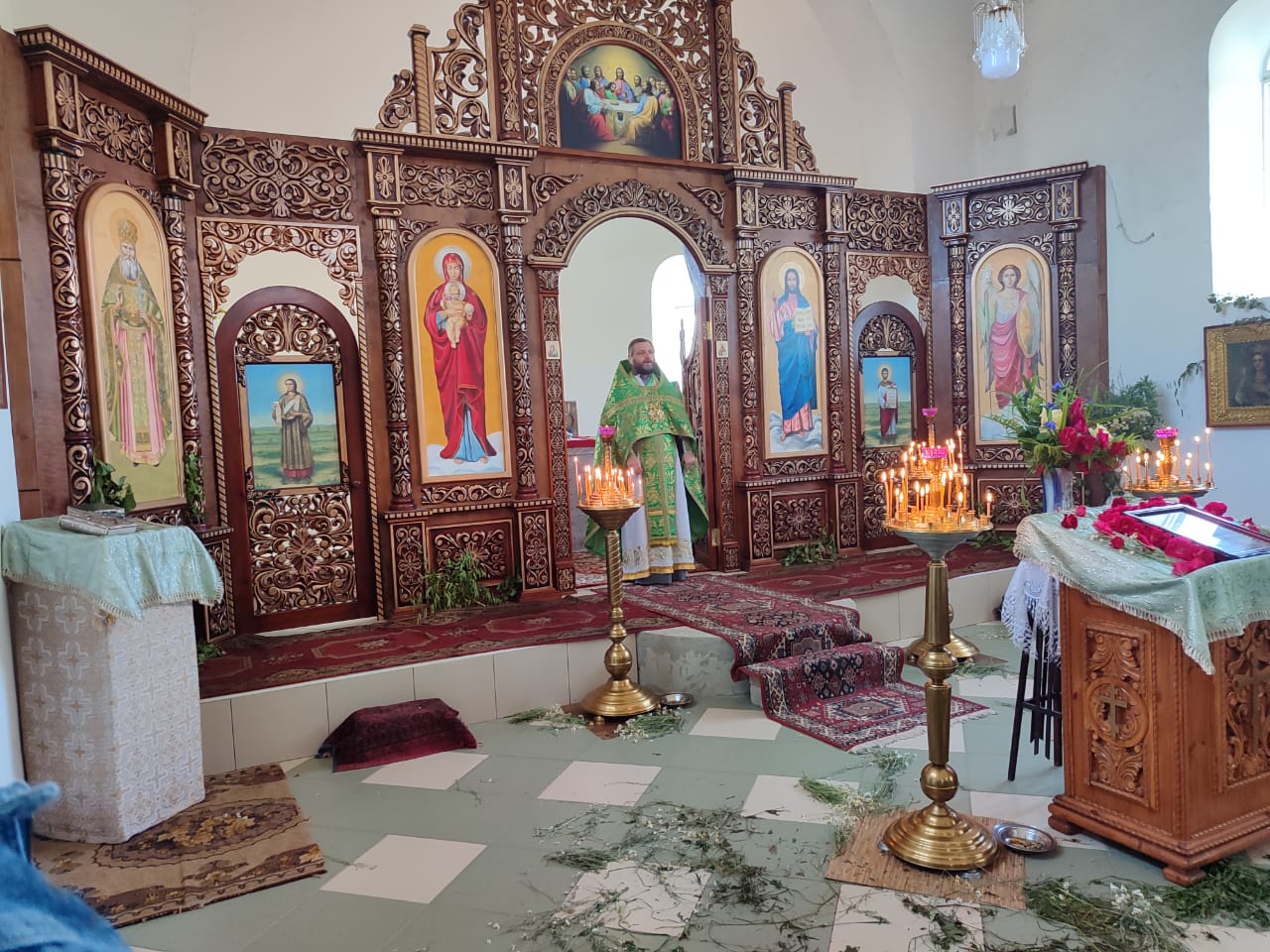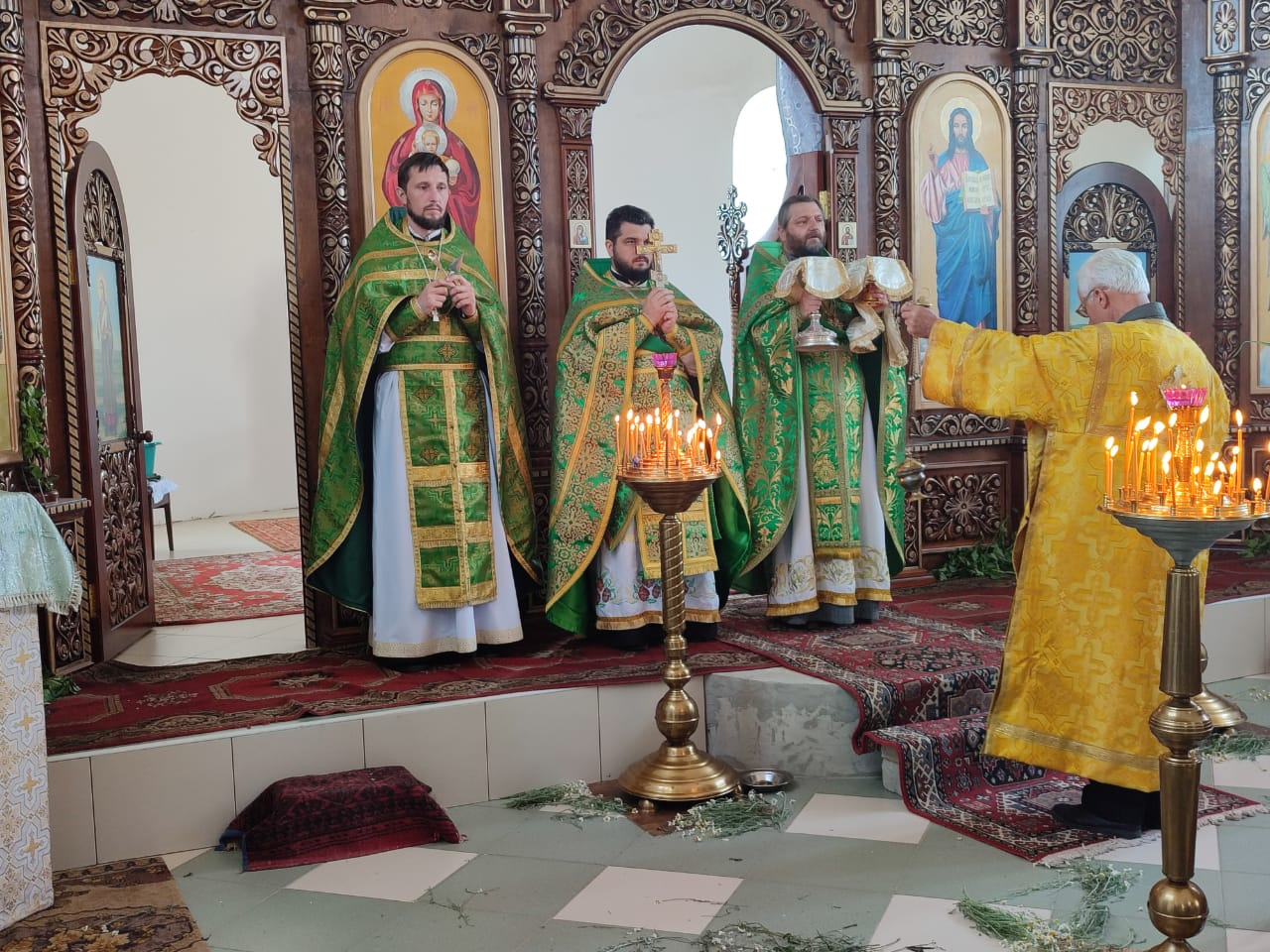 Богослужение совершал благочинный первого Луганского округа прот. Владимир Чесноков и благочинный Станично Луганского округа прот. Алексий Храбров с соборм духовенства в храме Покрова Пресвятой Богородицы пос. Новокондрашевск.