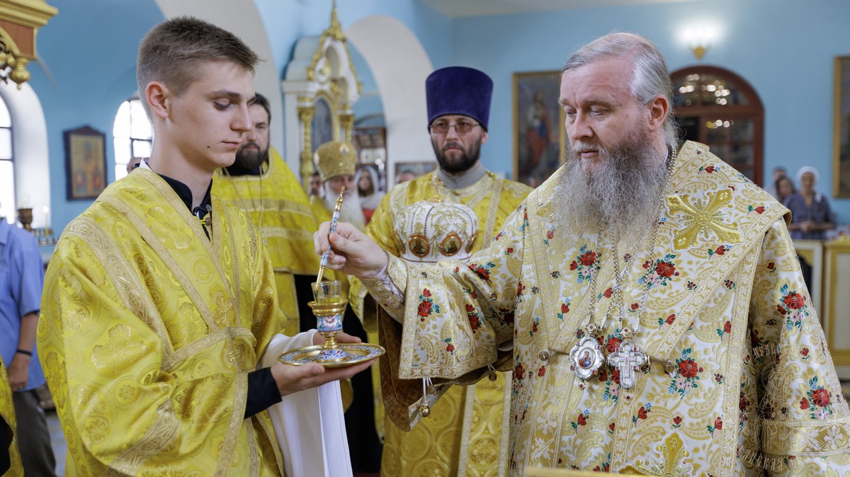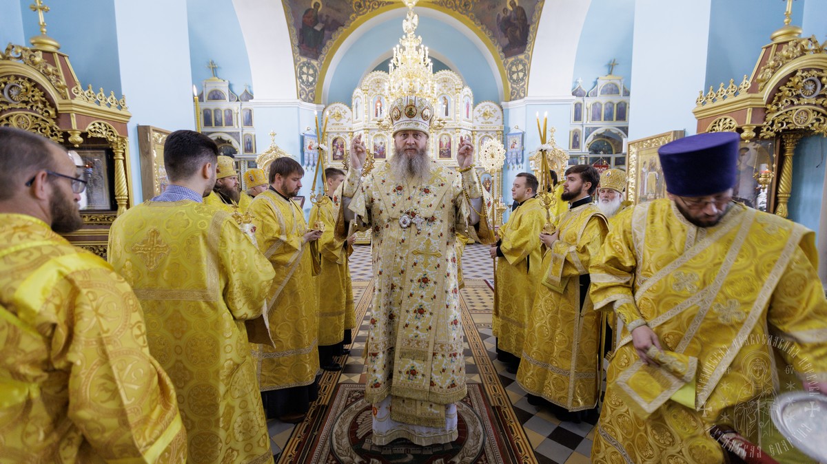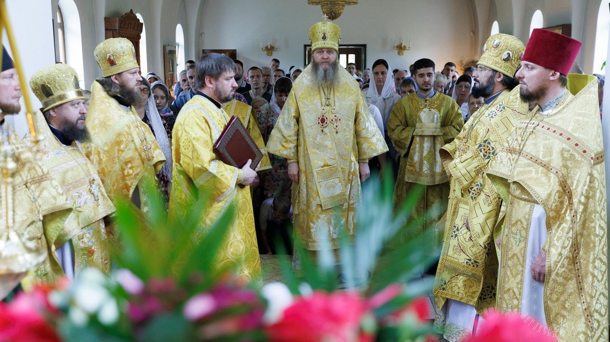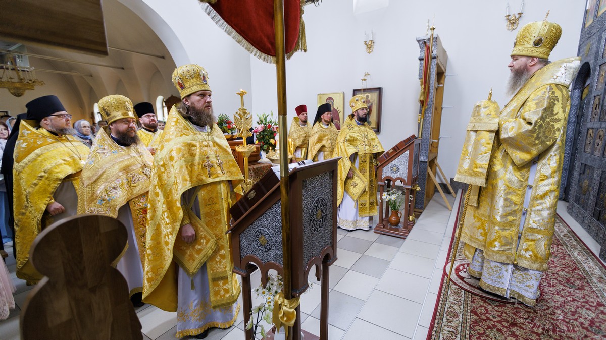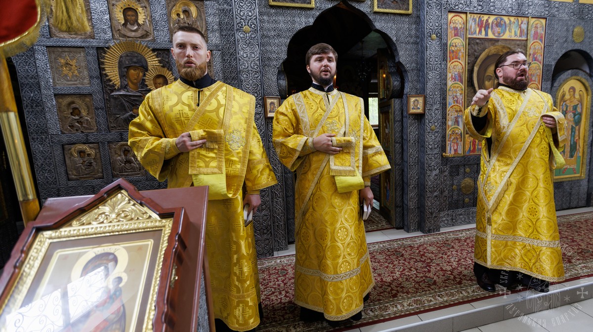 За Божественной литургией Его Высокопреосвященству сослужил секретарь епархии прот. Андрей Зозуля, игумен Свято-Вознесенского мужского монастыря архим. Иоанн (Сухина), братия монастыря и приходское духовенство.