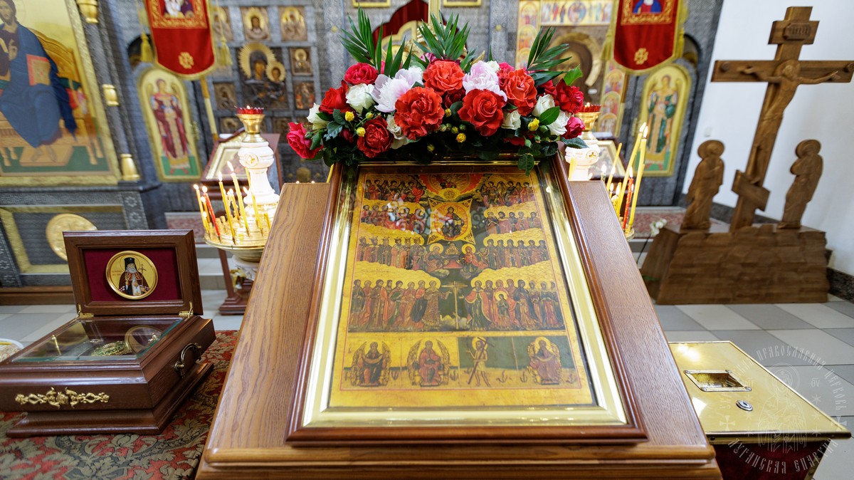 По окончании Литургии владыка вознес молитву всем святым, и было совершено славление всему лику святых.