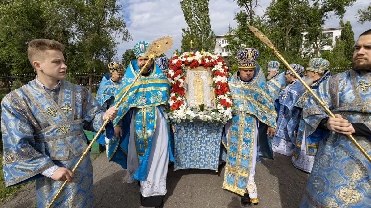 По окончании Литургии архипастыри, духовенство и верующий народ пропели молитву Пресвятой Богородице и приложились к Ее святому образу.