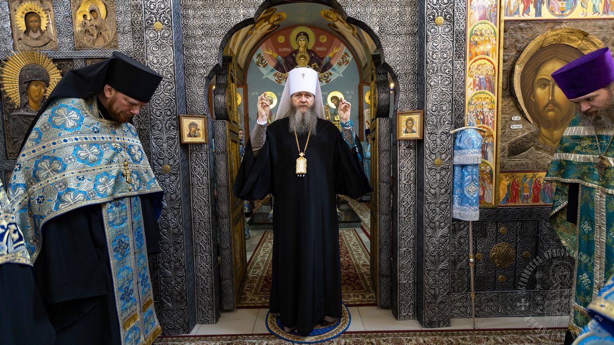 За Утреней митрополит Пантелеимон в сослужении секретаря епархии прот. Андрея Зозули, игумена Свято-Вознесенского монастыря архим. Иоанна (Сухины) и духовенства епархии, совершил молебное акафистное пение Пресвятой Богородице.