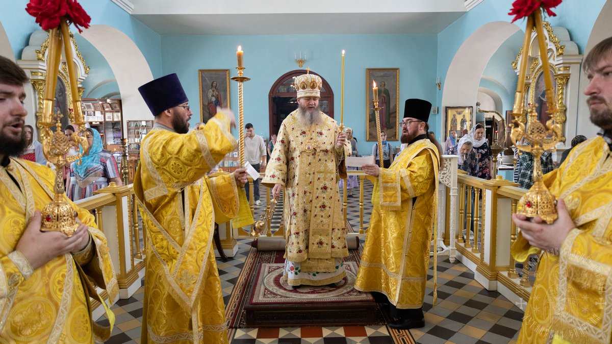 18 июня, в день памяти Всех святых, в земле Русской просиявших, Высокопреосвященнейший Пантелеимон, митрополит Луганский и Алчевский, совершил Божественную литургию в храме Всех святых.