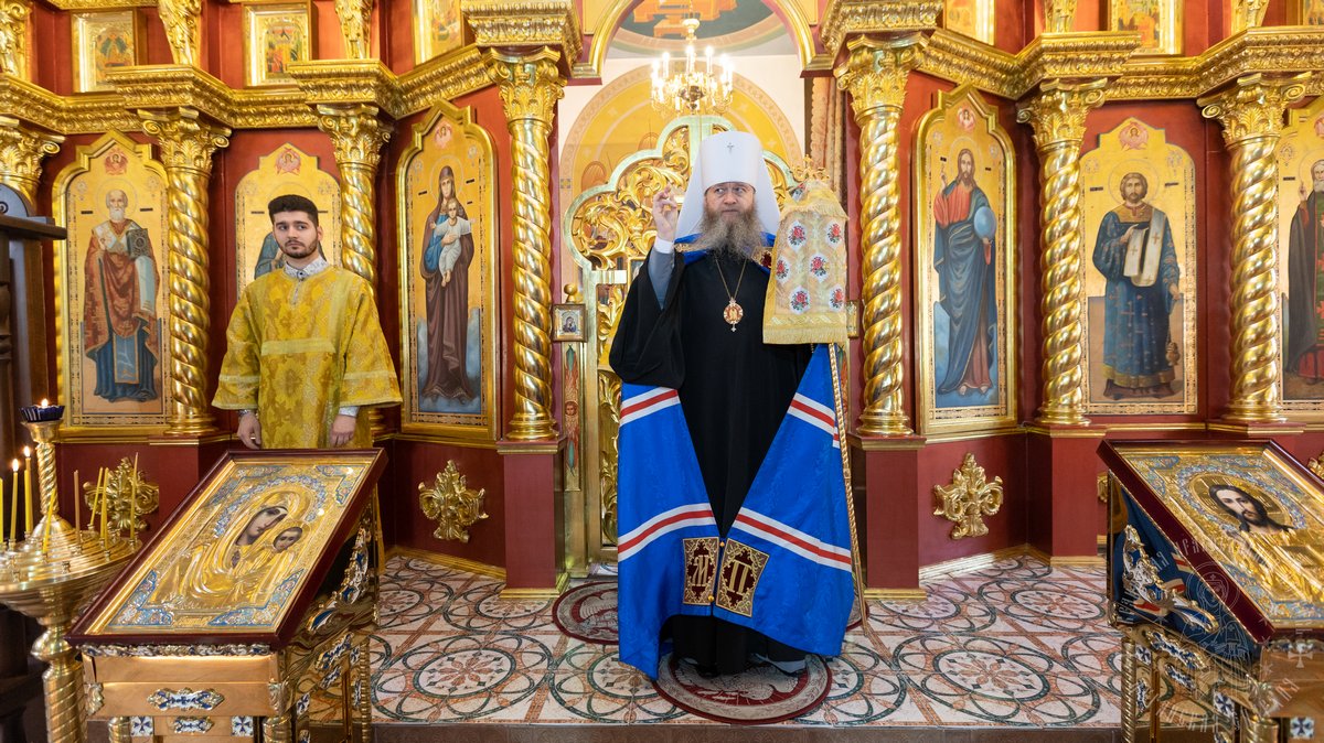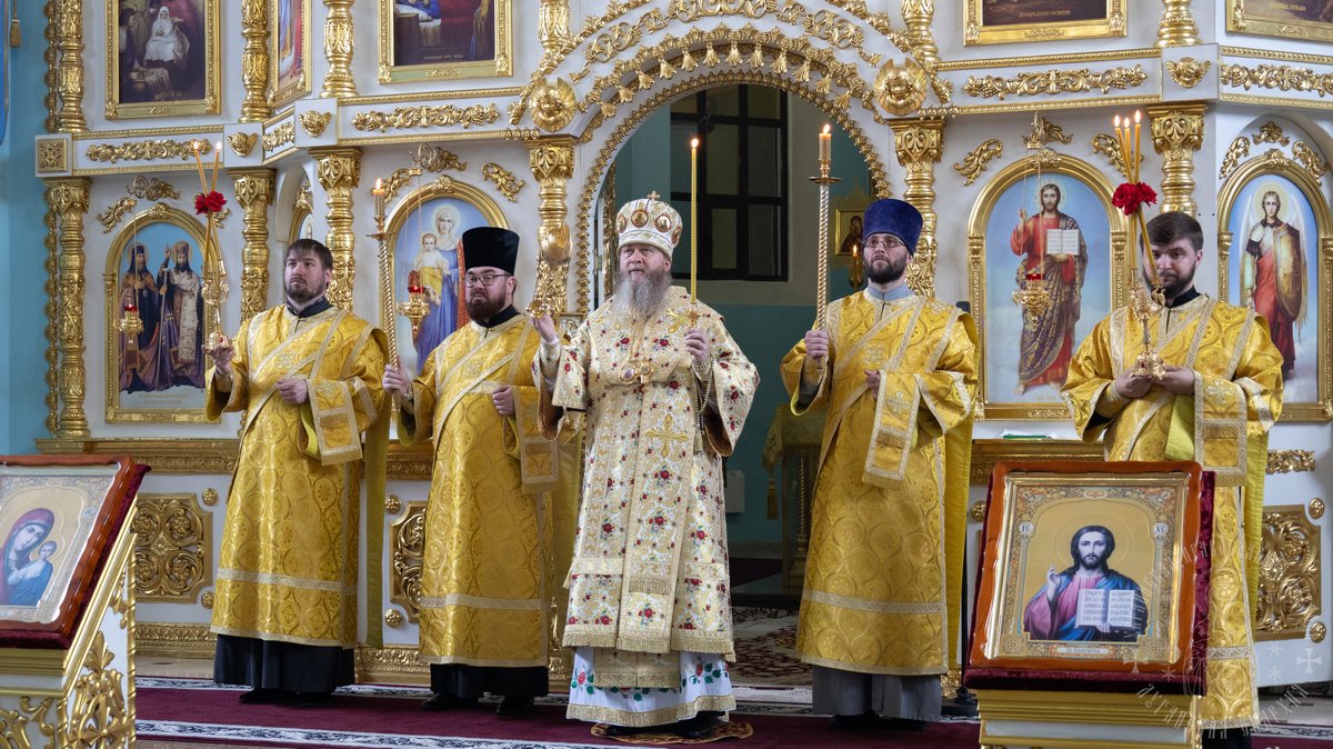 Накануне воскресного дня, владыка совершил Всенощное бдение в Свято-Петро-Павловском кафедральном соборе.