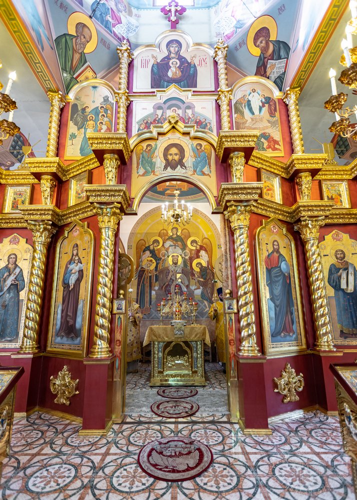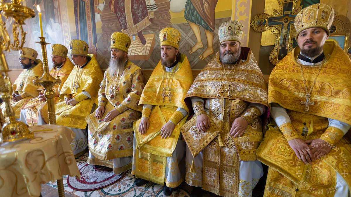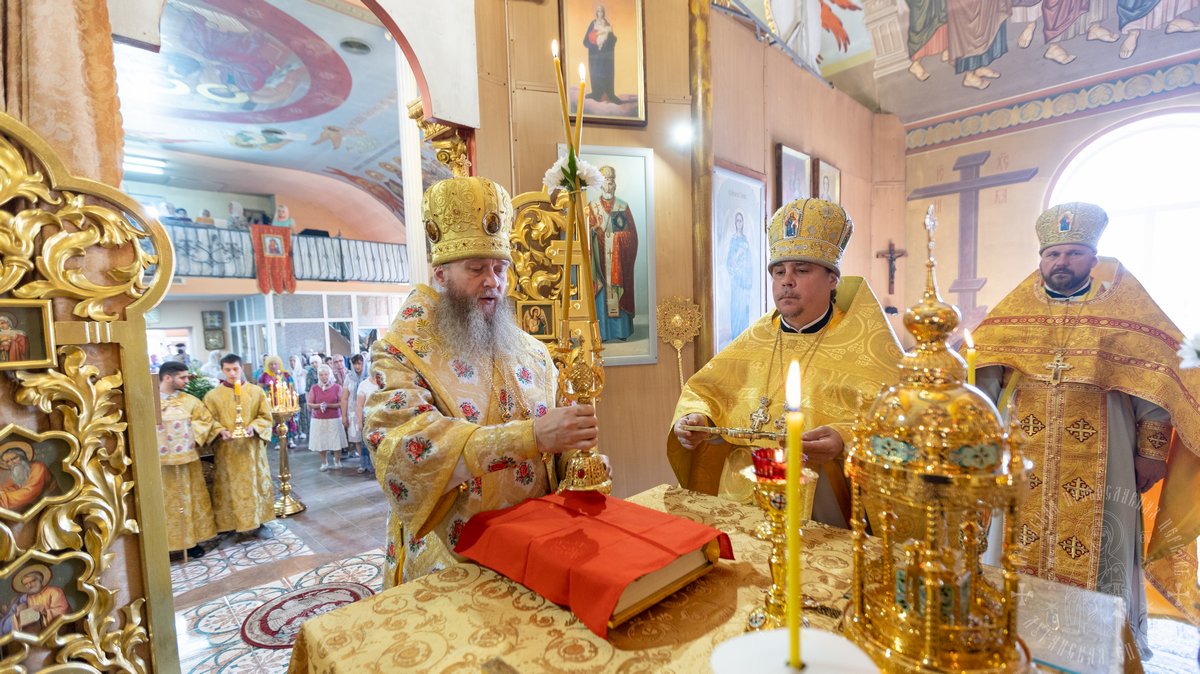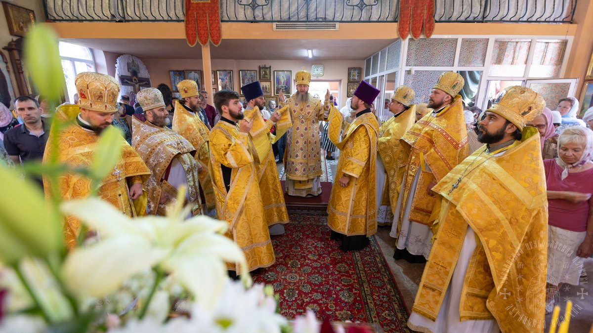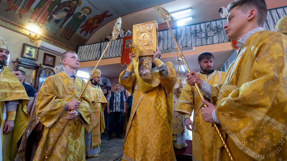 За Литургией Его Высокопреосвященству сослужил секретарь епархии прот. Андрей Зозуля, благочинный центрального городского округа прот. Александр Пономарев, благочинный первого округа архим. Тихон (Ильгов), благочинный Новоайдарского округа прот. Евгений Рогозинский, настоятель храма прот. Александр Беспалов, а также приглашенное духовенство.
